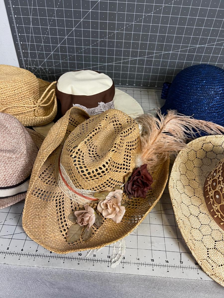 Grouping of Vintage Straw Ladies Hats