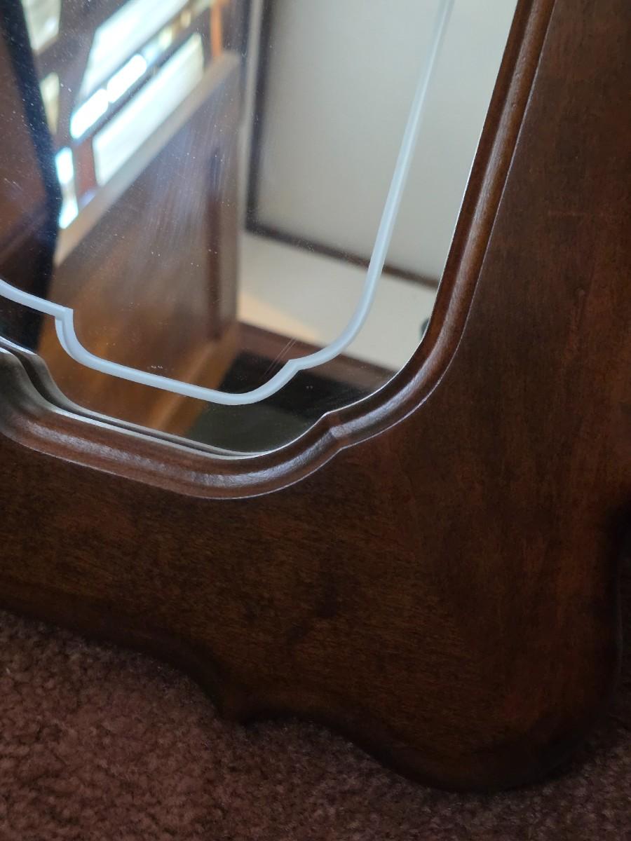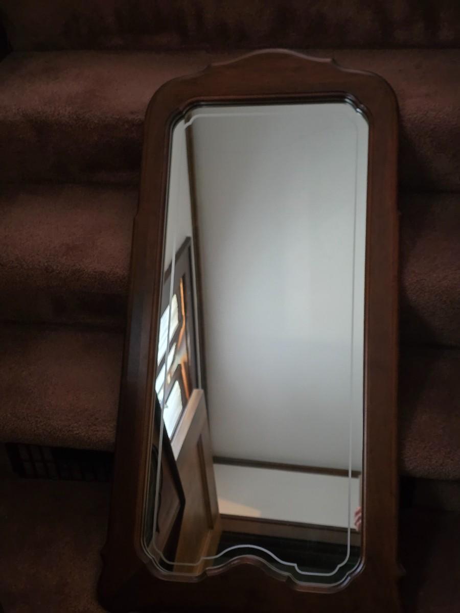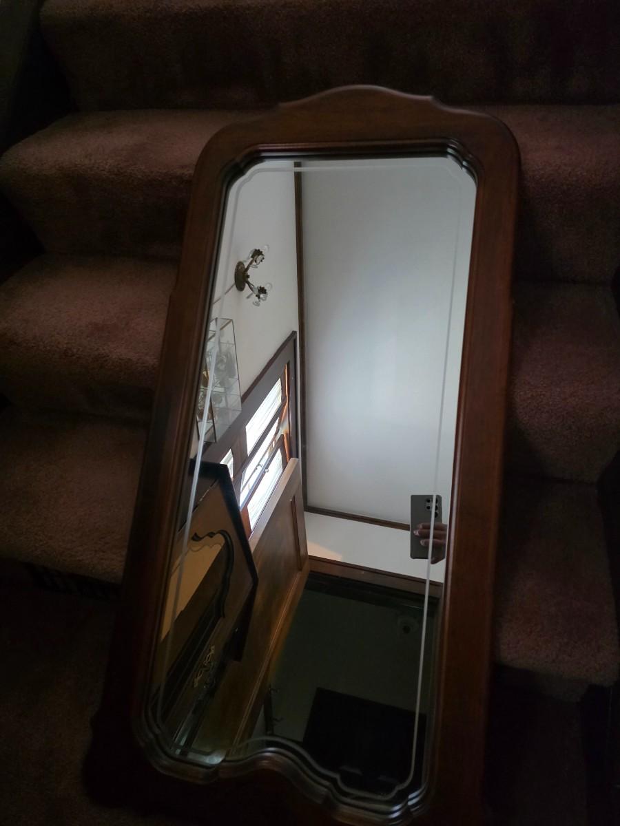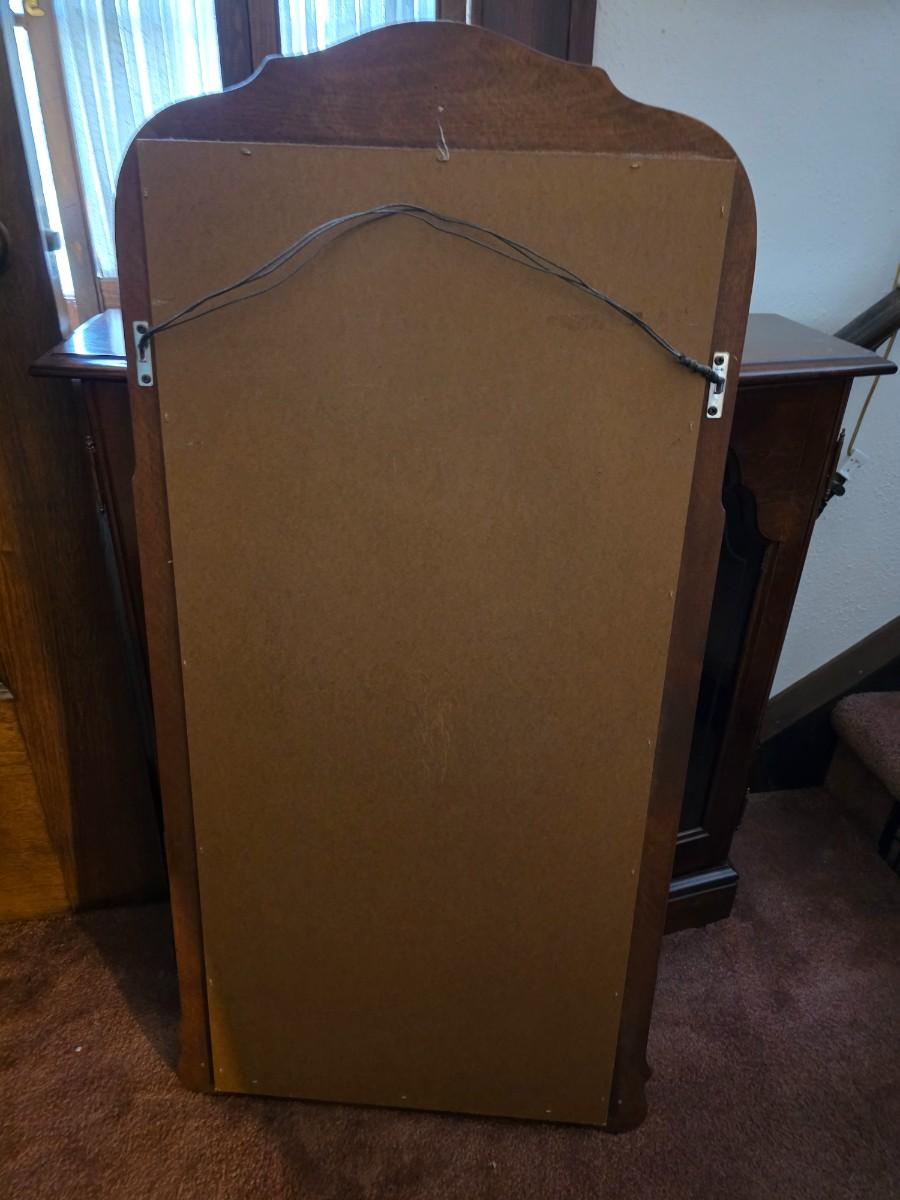 Beautiful vintage hallway mirror. Heavy wood frame mirror measures. 20" x 42".
