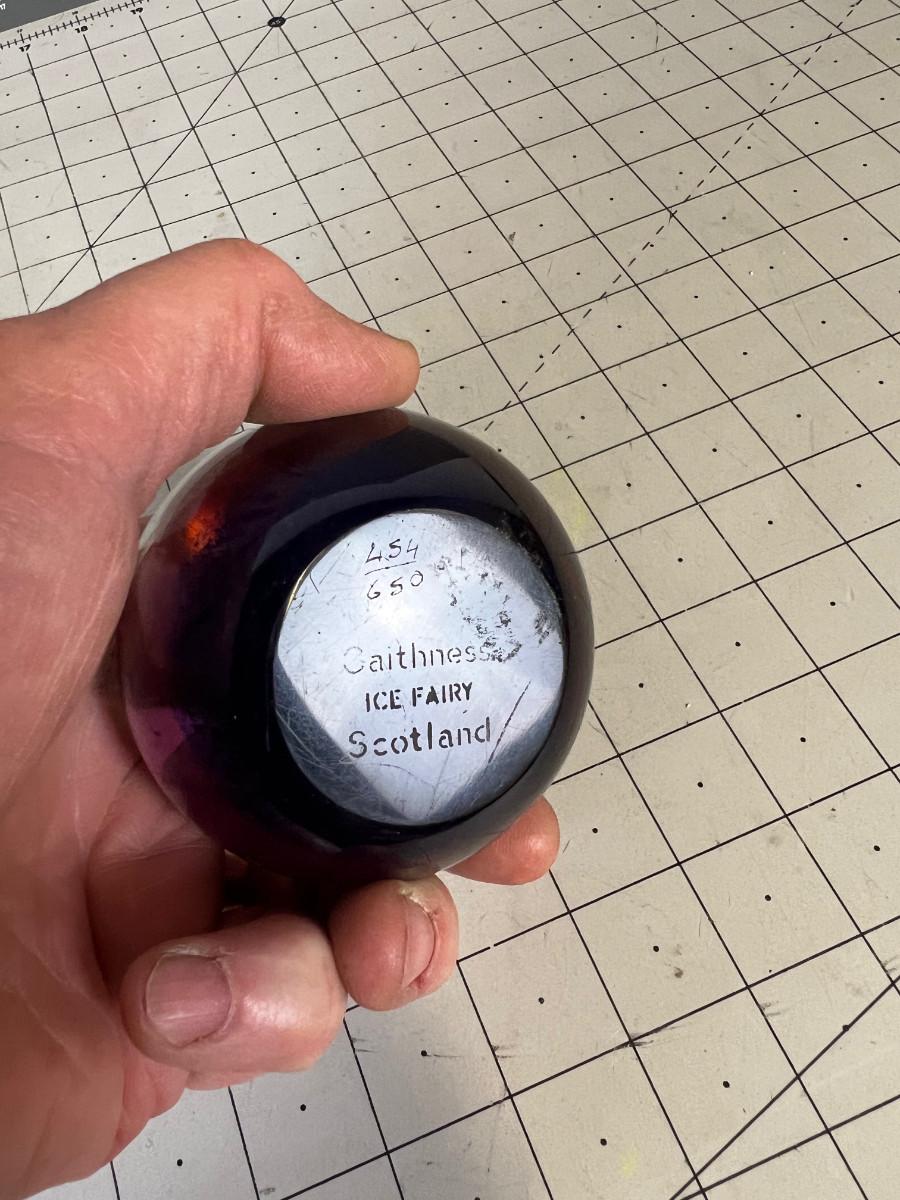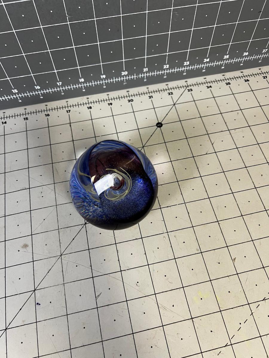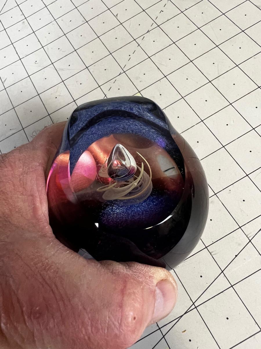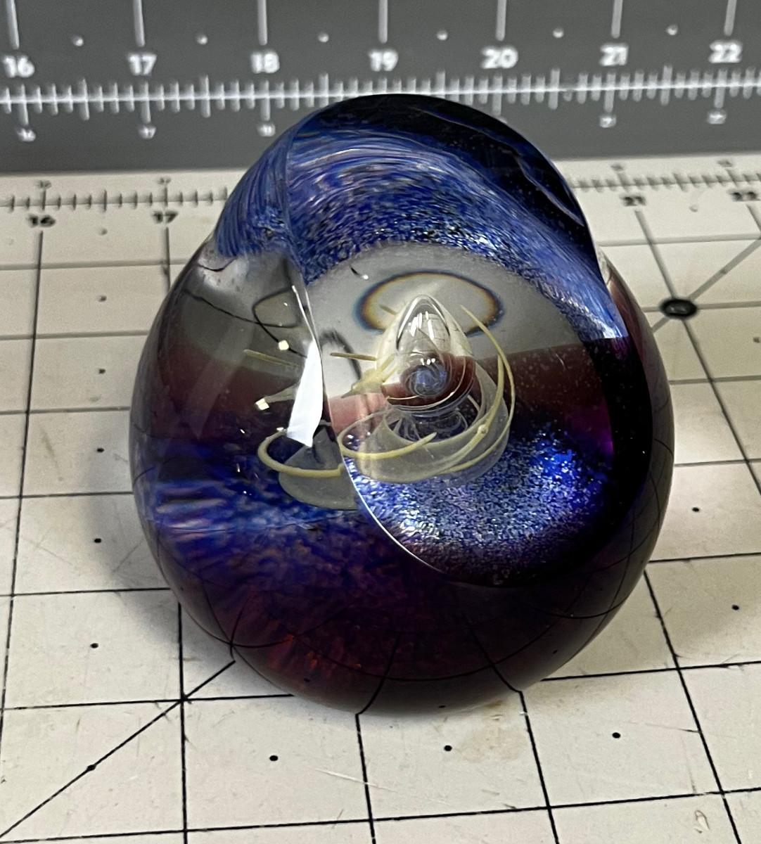 Hand Blown Glass Paper Weight Signed, Purple Tear Drop Shape with Drop Shape inside Ice Fairy