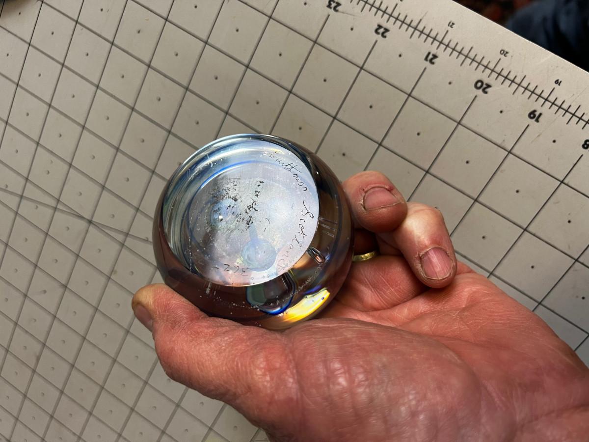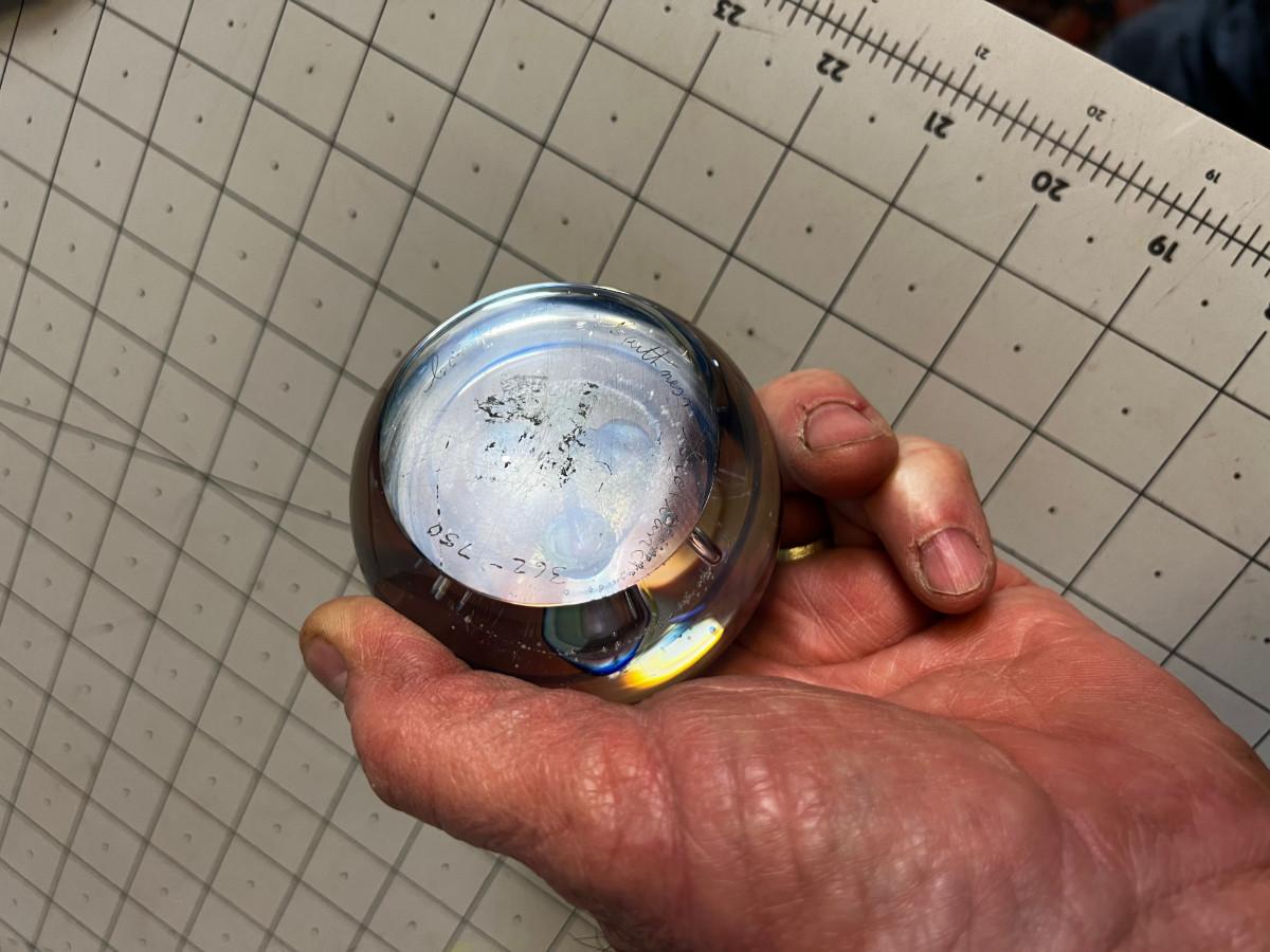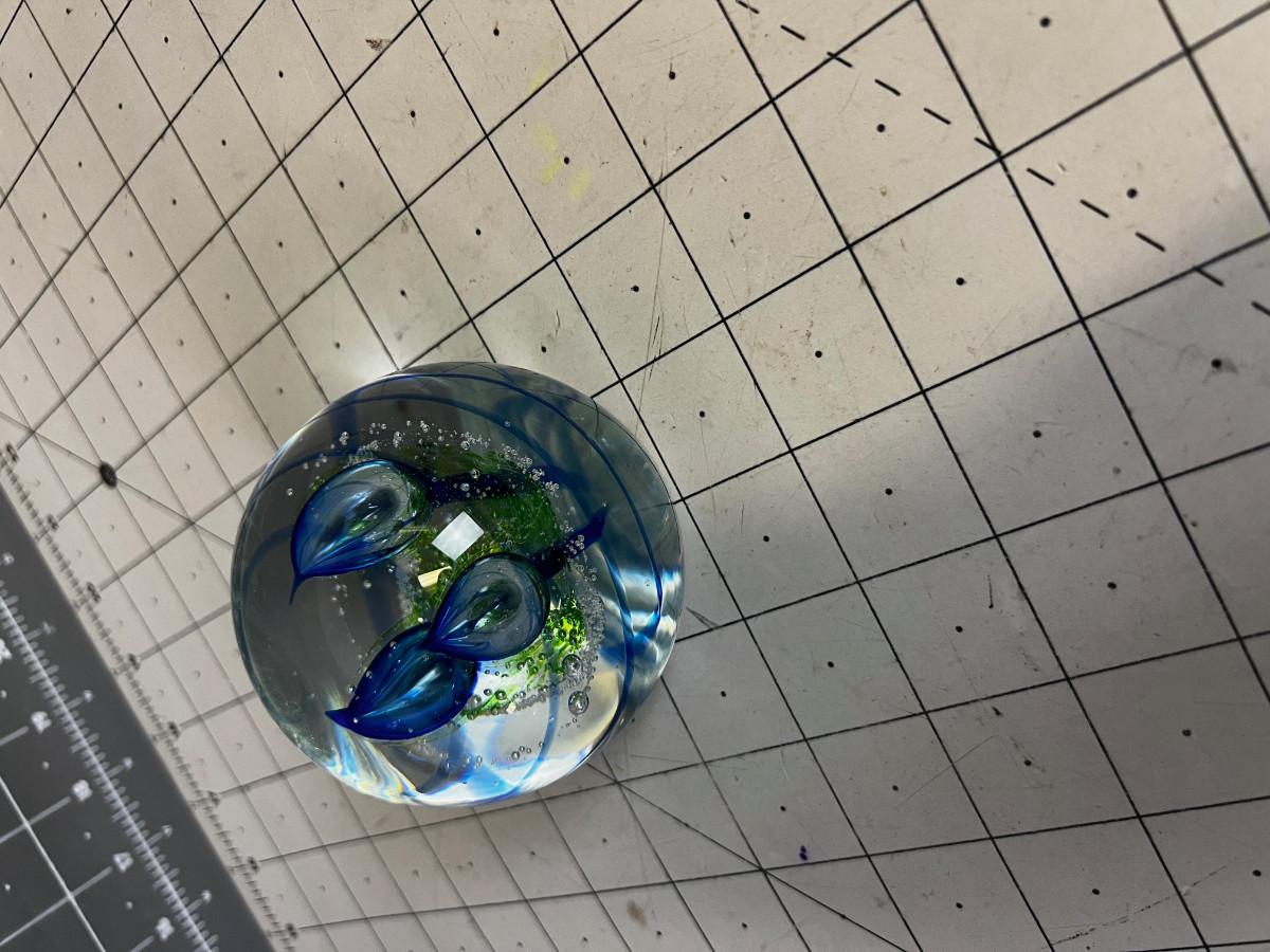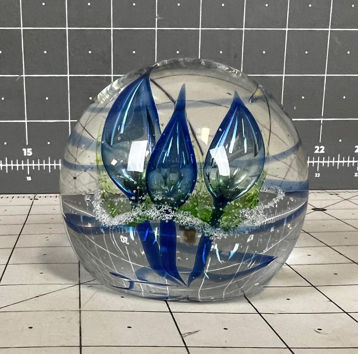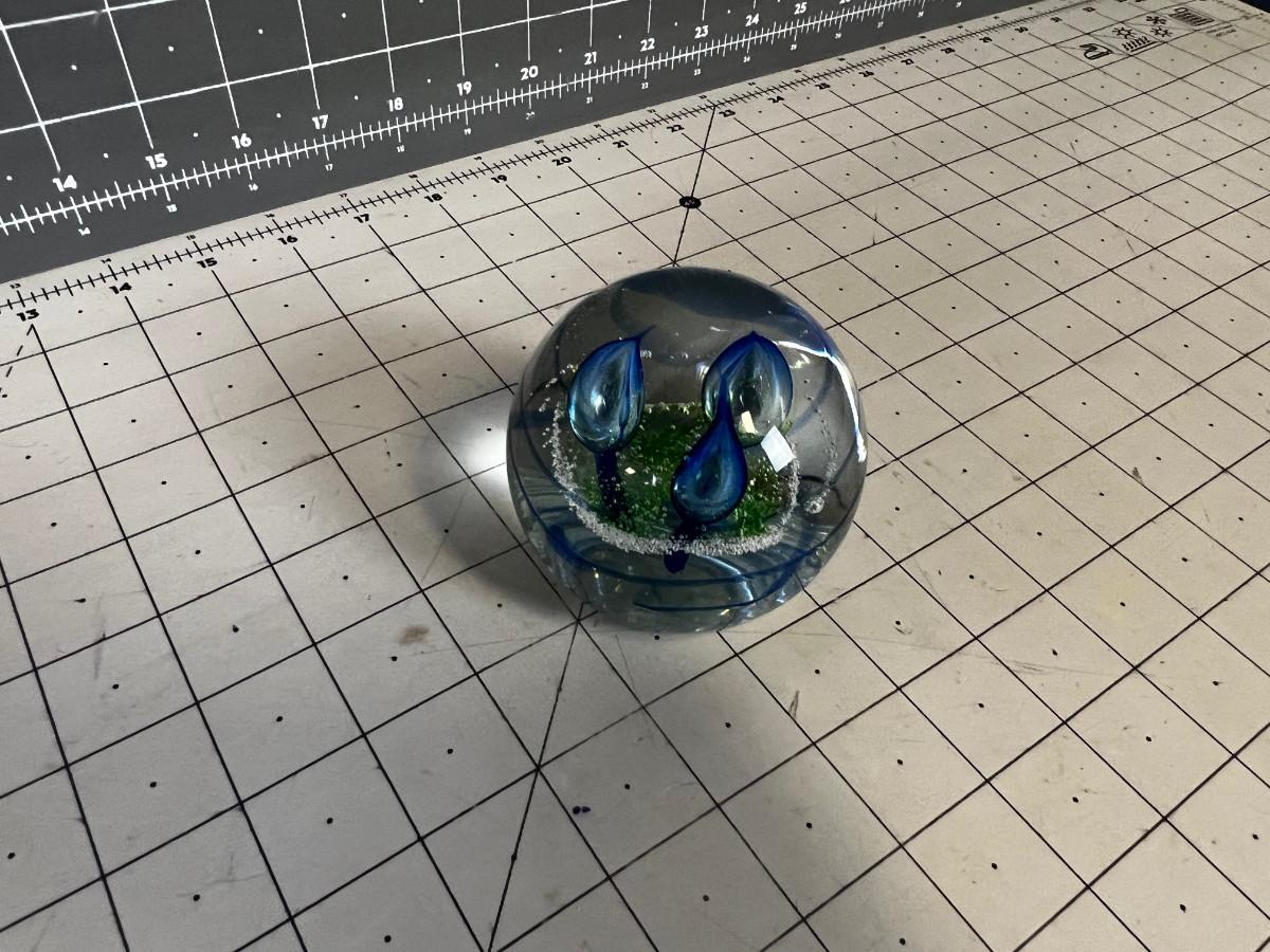 Hand Blown Glass Paper Weight Blue Green Scotland