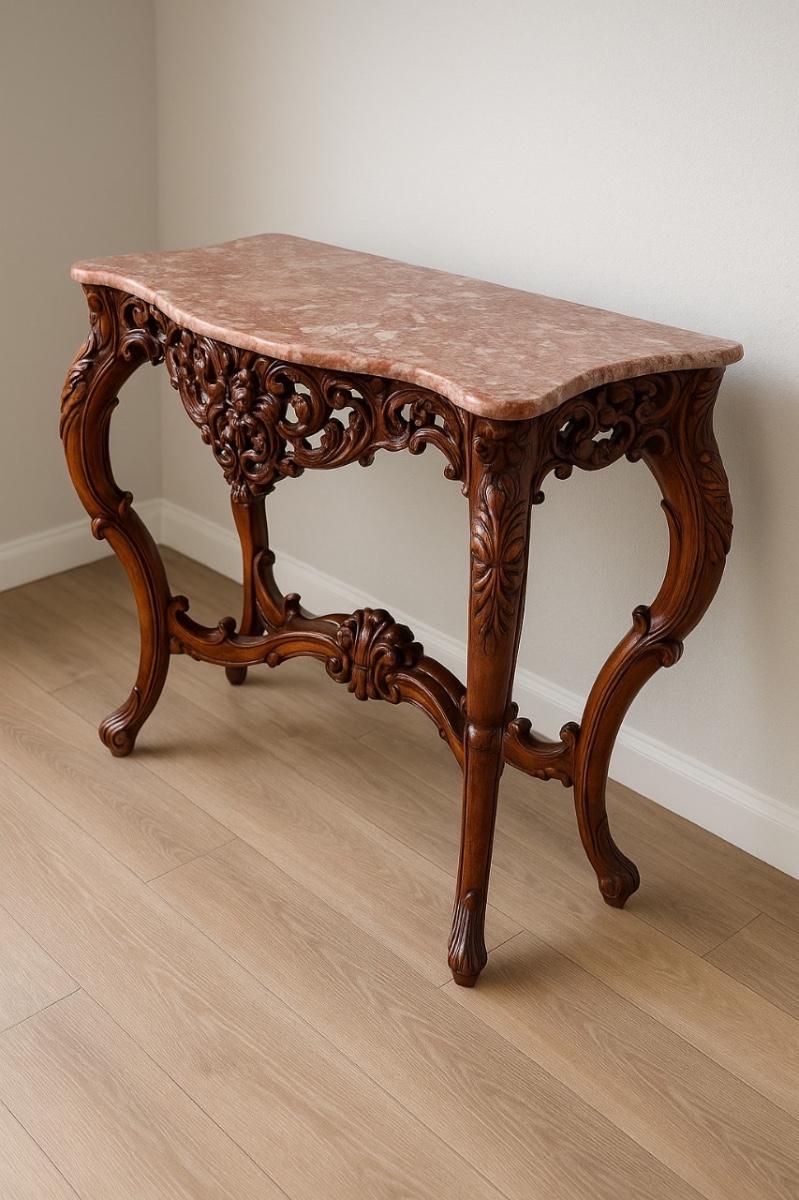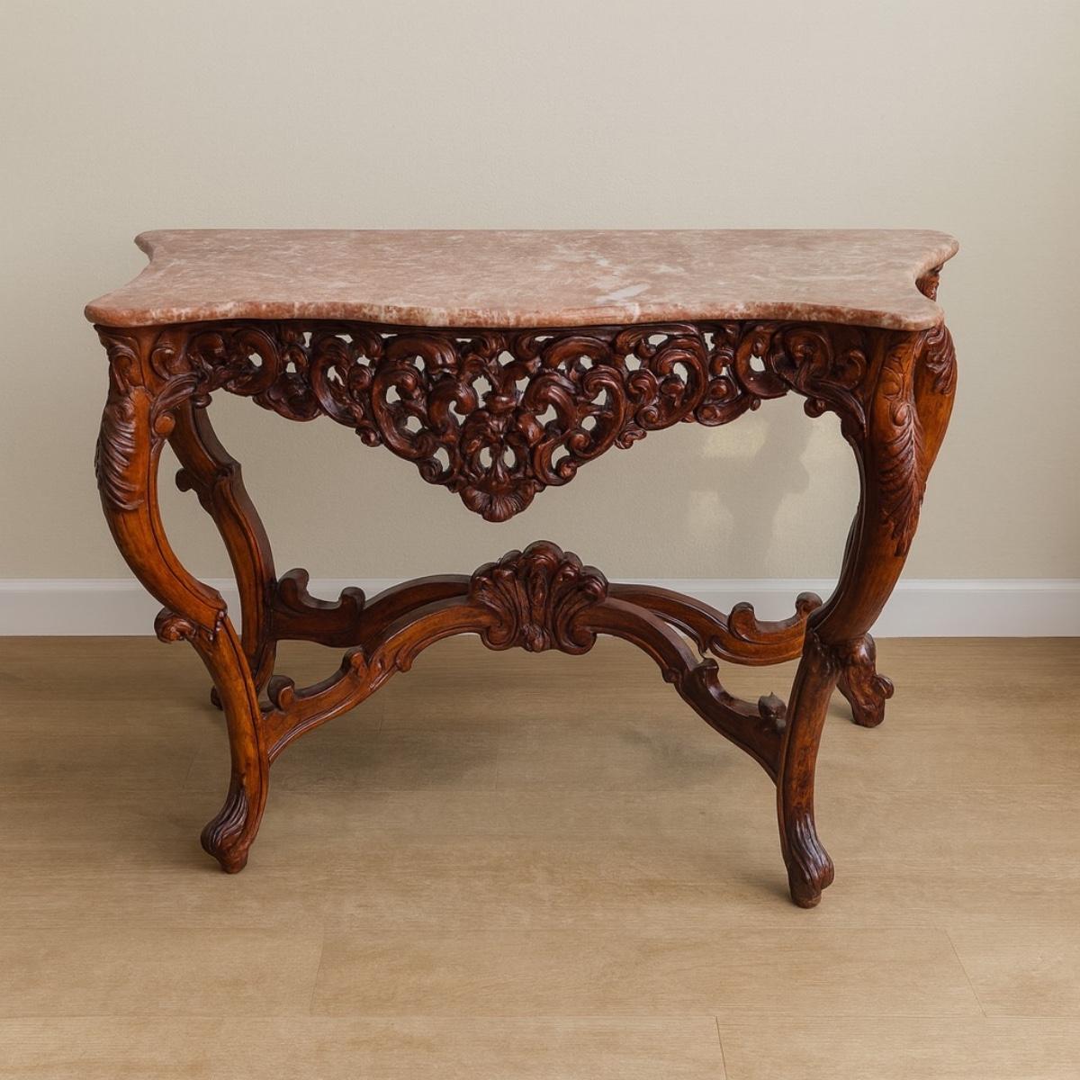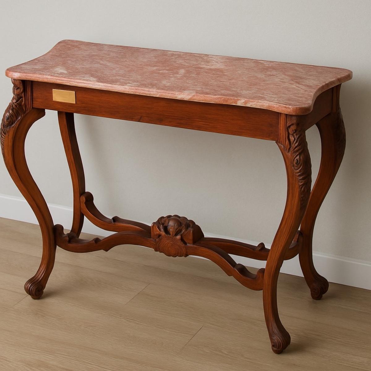 Hand Carved Pink Marble Top Console Table