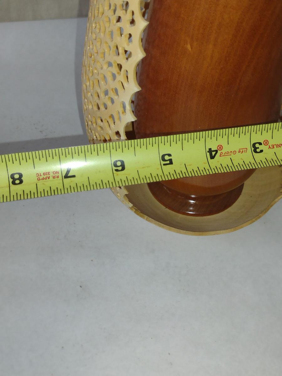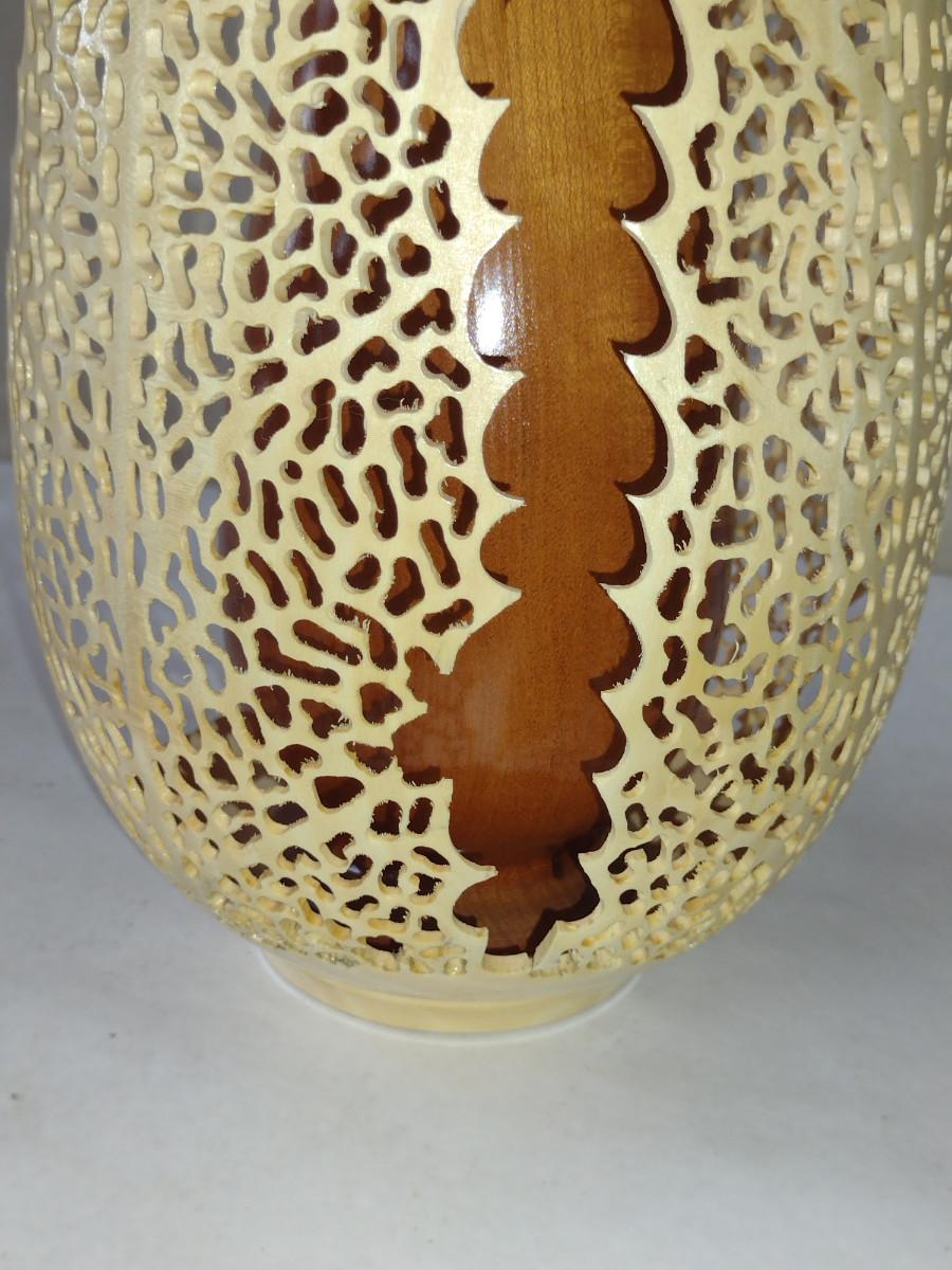 Hand Crafted, Turned and Pierced Wood Home Decor by Bobby Phillips- Box Elder and Cherry (#44). Item measures approx 10 3/4" tall. Item only has three pierced panels- please see all pictures.