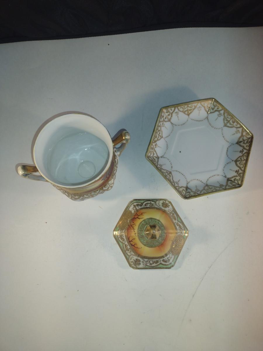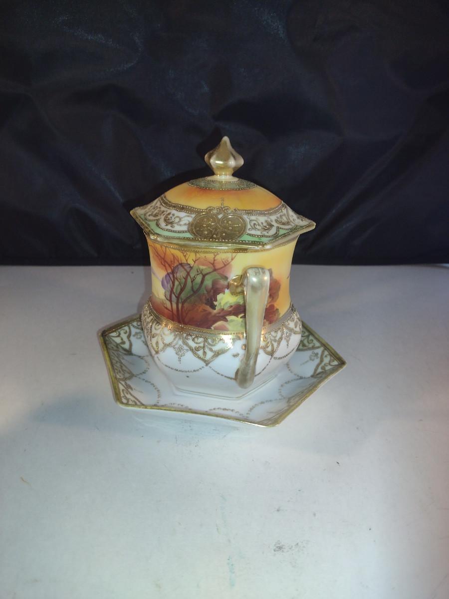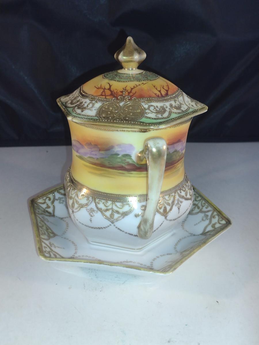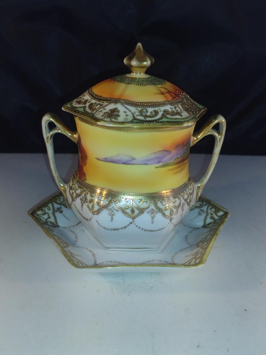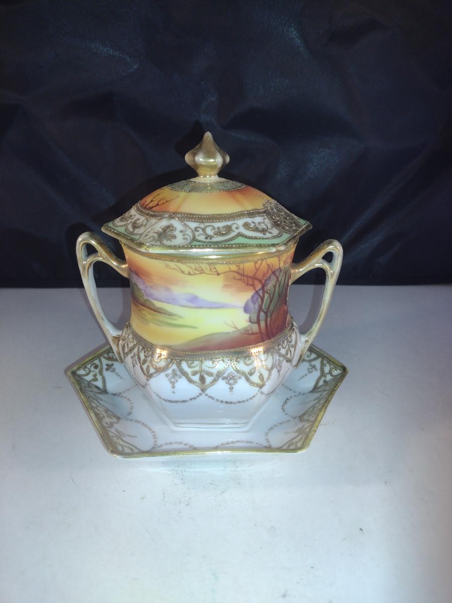 Hand Painted Nippon Condensed Milk Cover with Under Plate and Lid