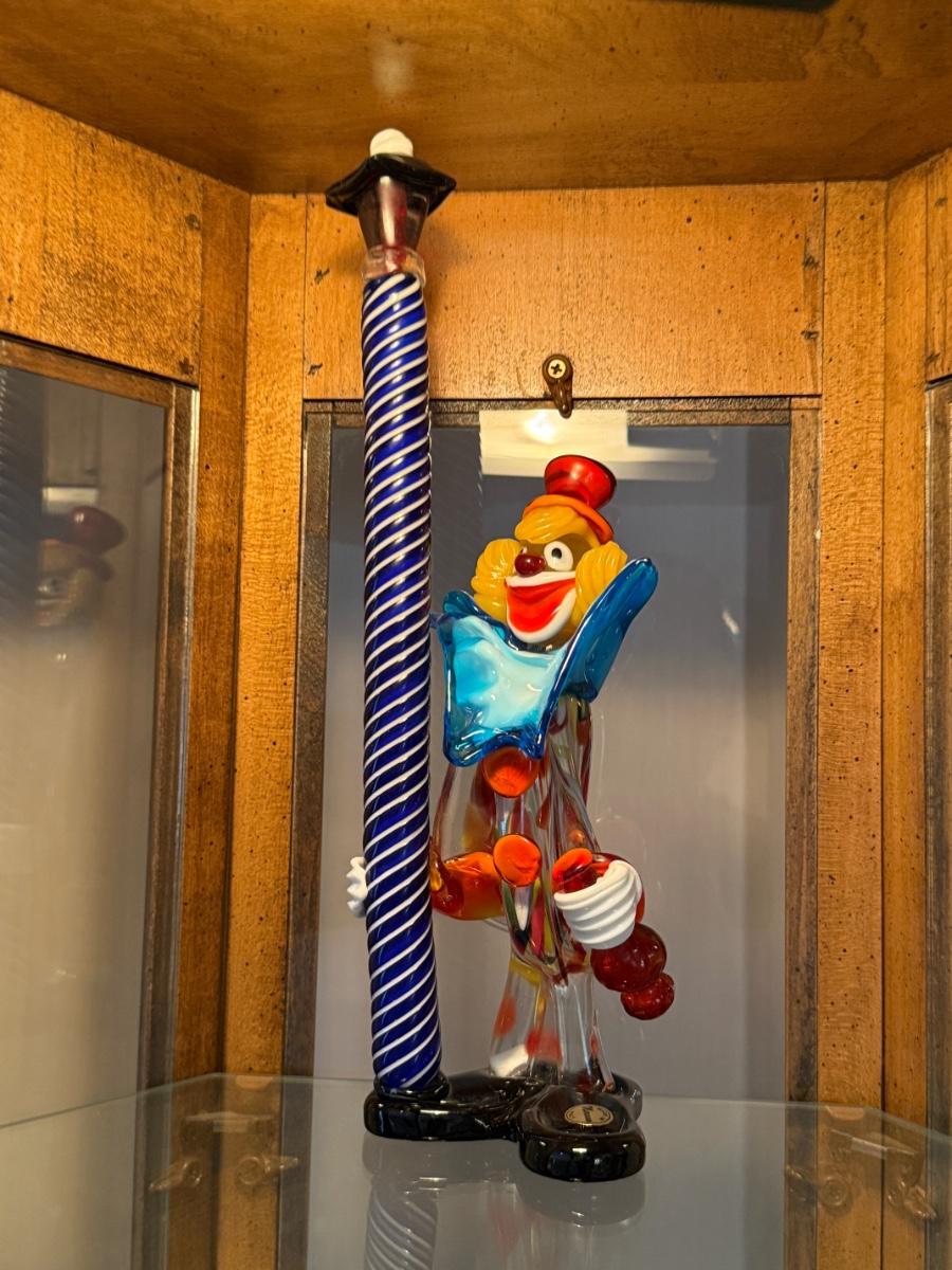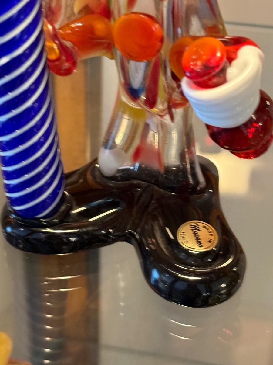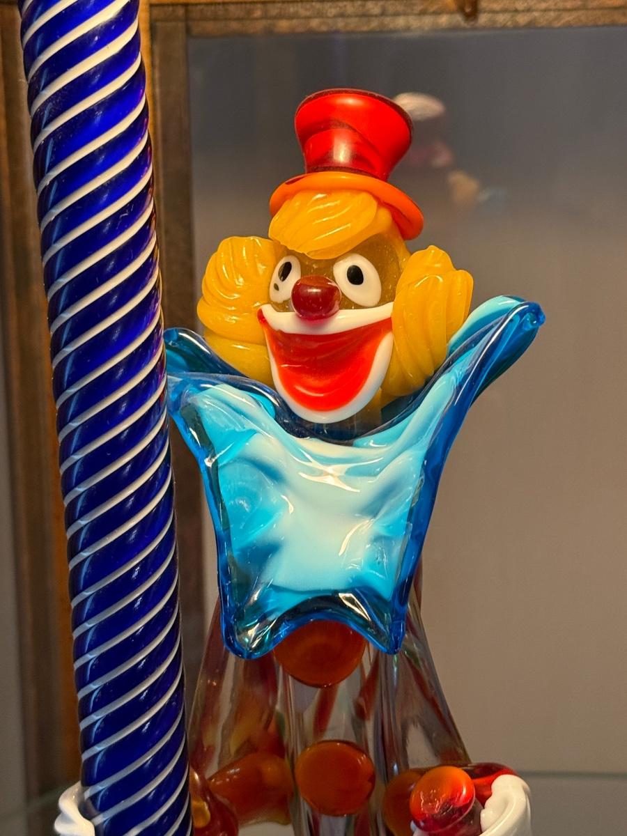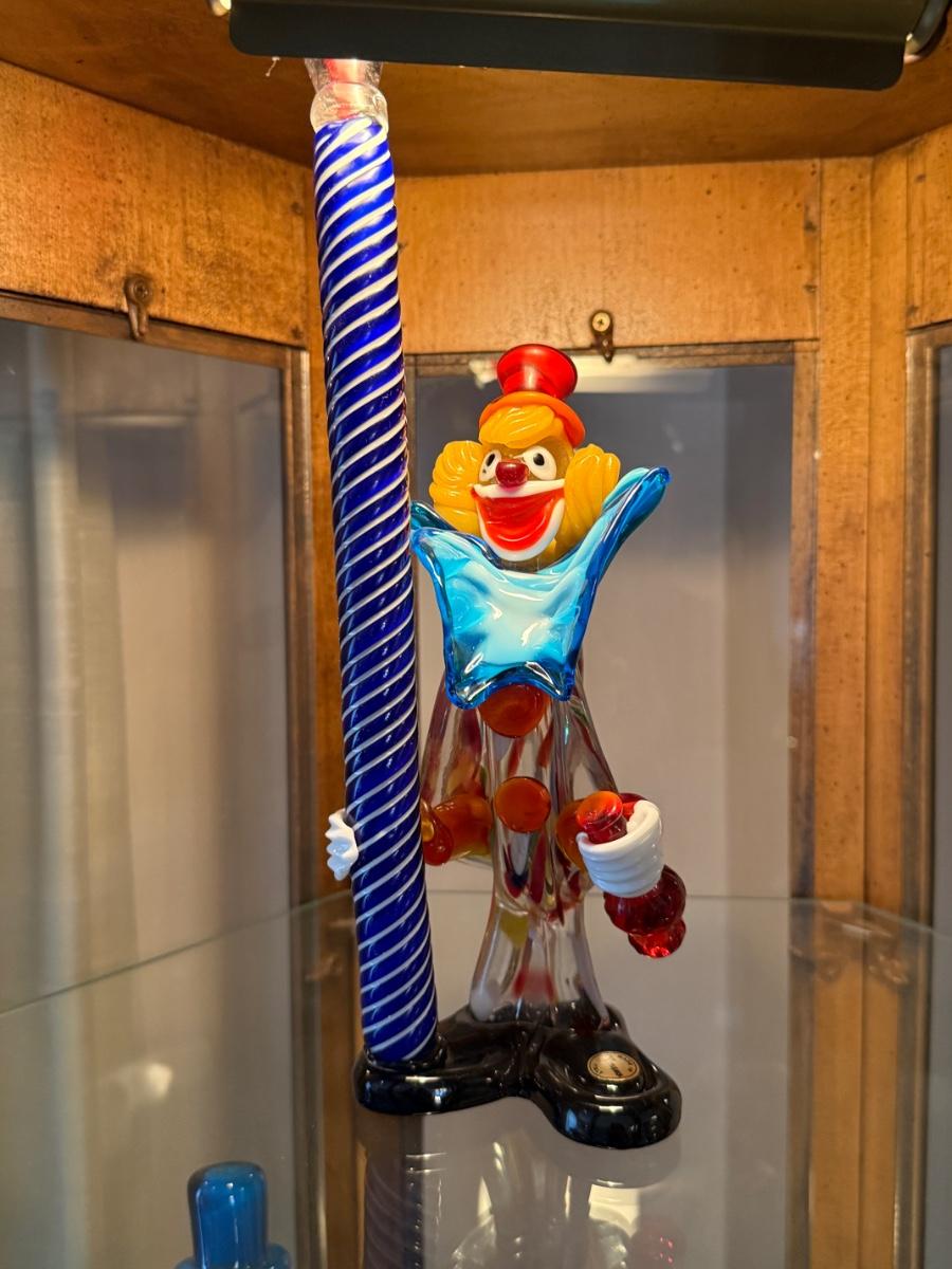 Handblown Murano Glass Clown with Blue Pole 12”