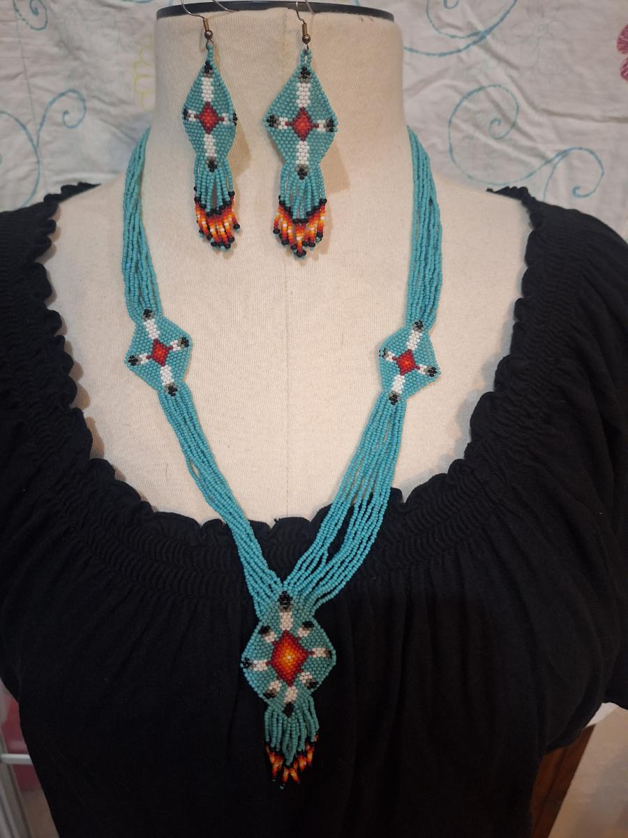 Handmade Navajo Seed bead Necklace and earrings.