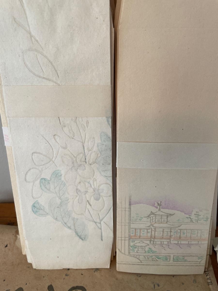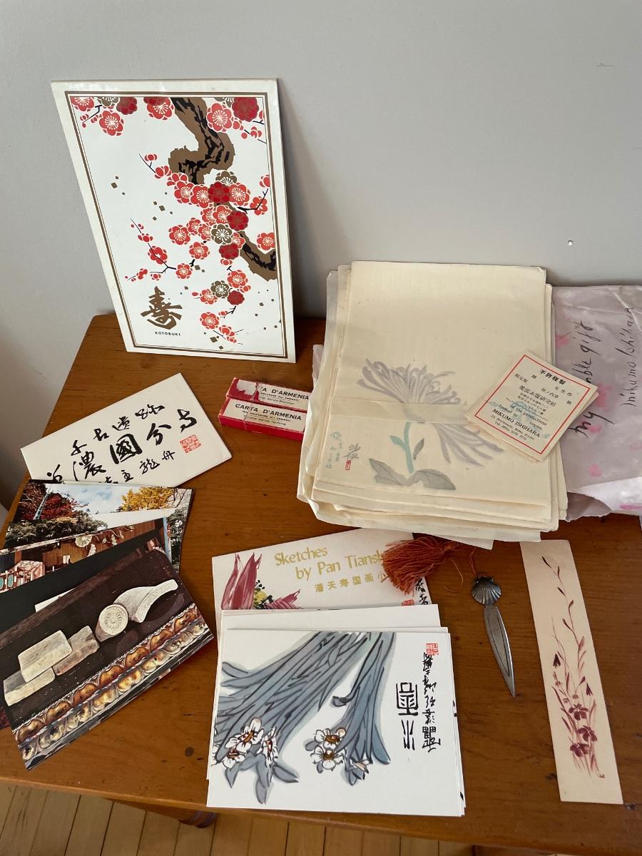 Beautiful hand painted paper products. Possibly rice paper, including postcards. See pics.