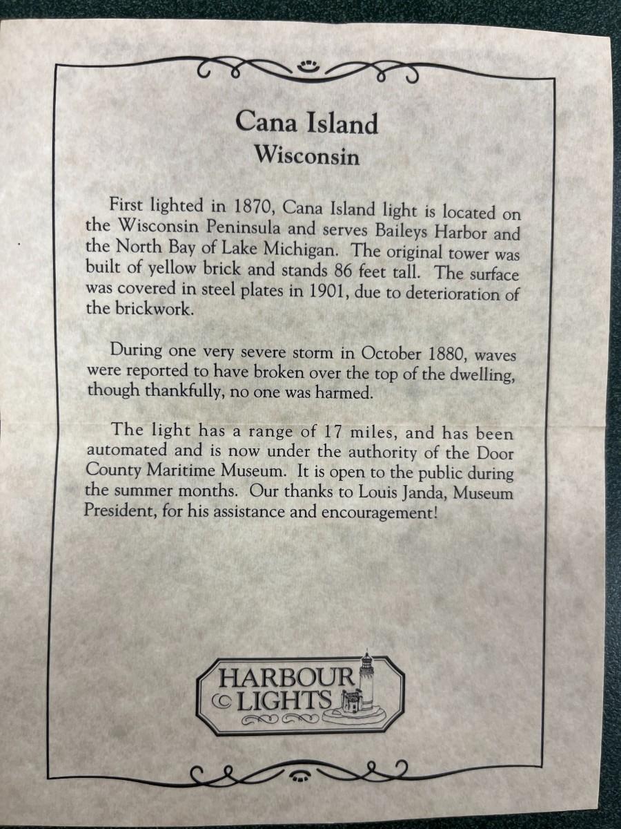 Harbour Light Cana Island Lighthouse and Box. #119 This lighthouse was introduced in January 1992 and retired in September 1995. It includes the Certificate of Authenticity