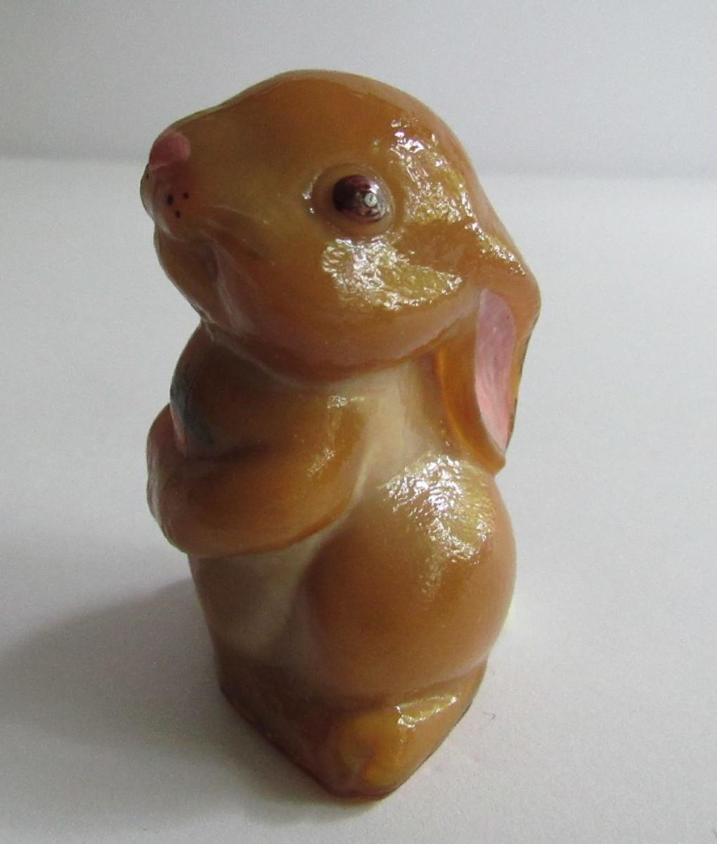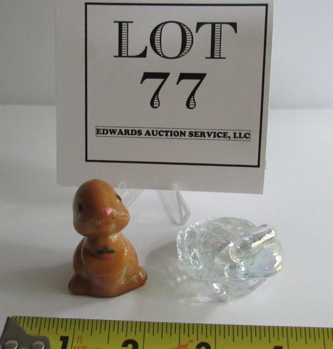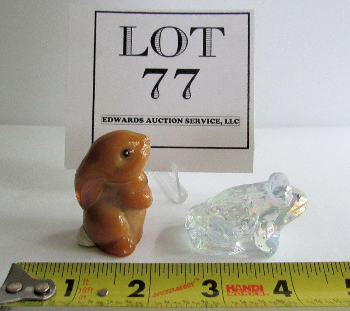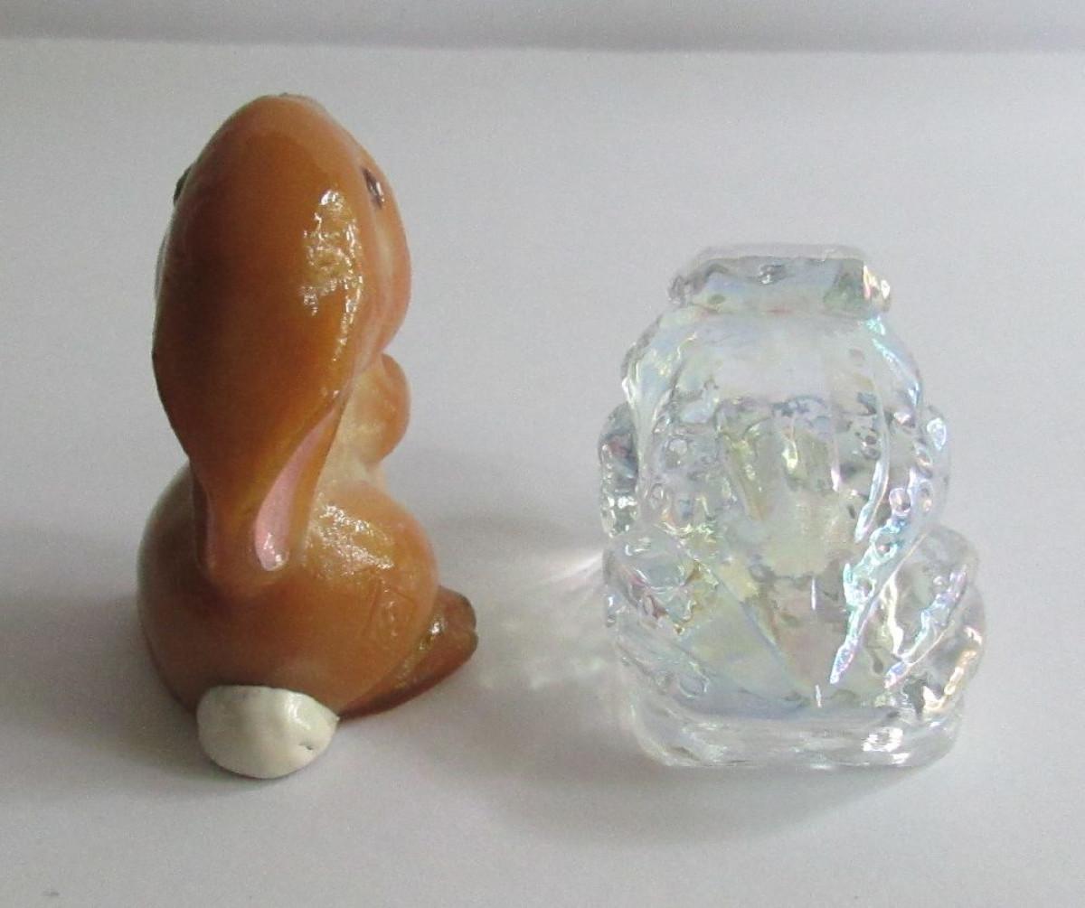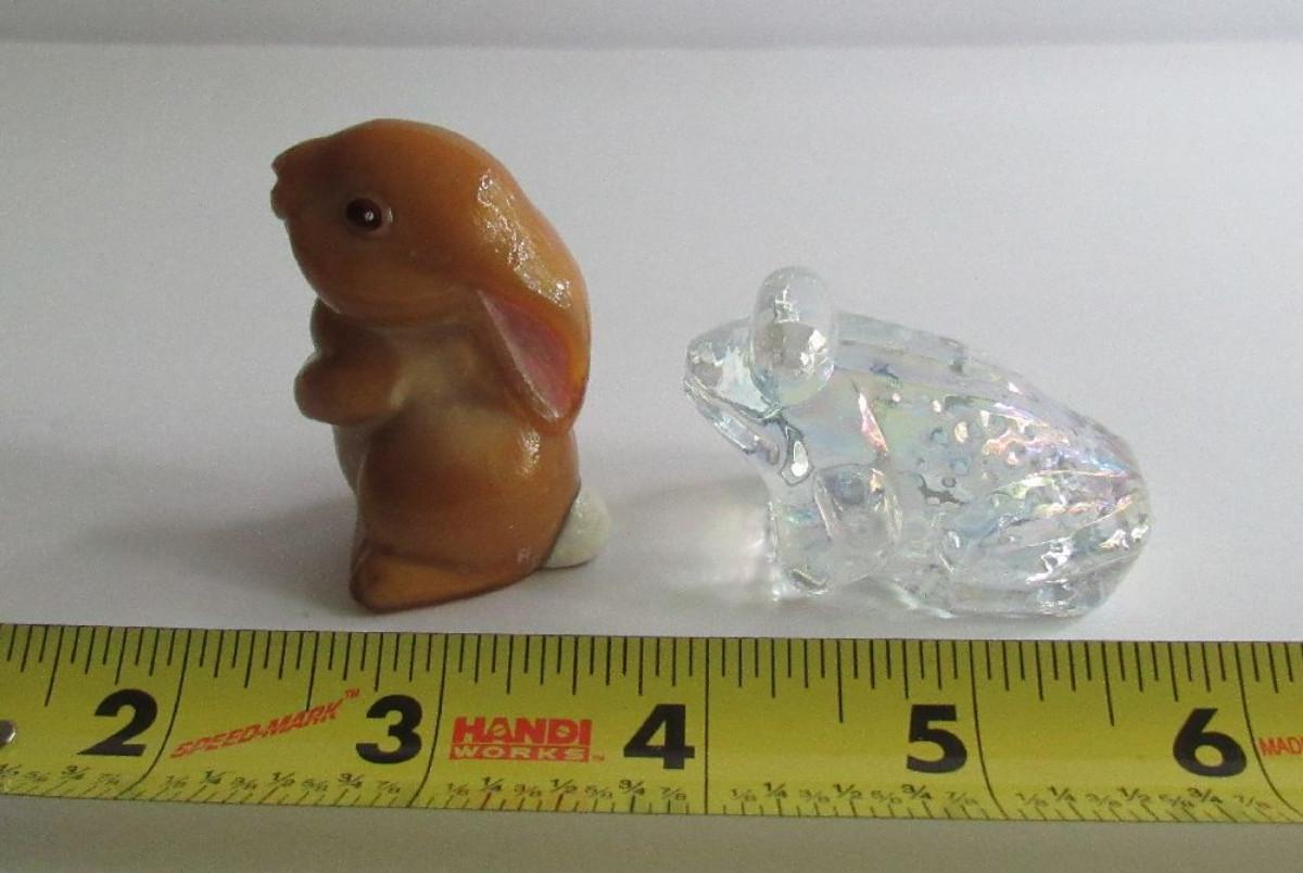 Hard to Find Boyd Brian the Bunny Hand Painted Figure and Clear Carnival Glass Frog