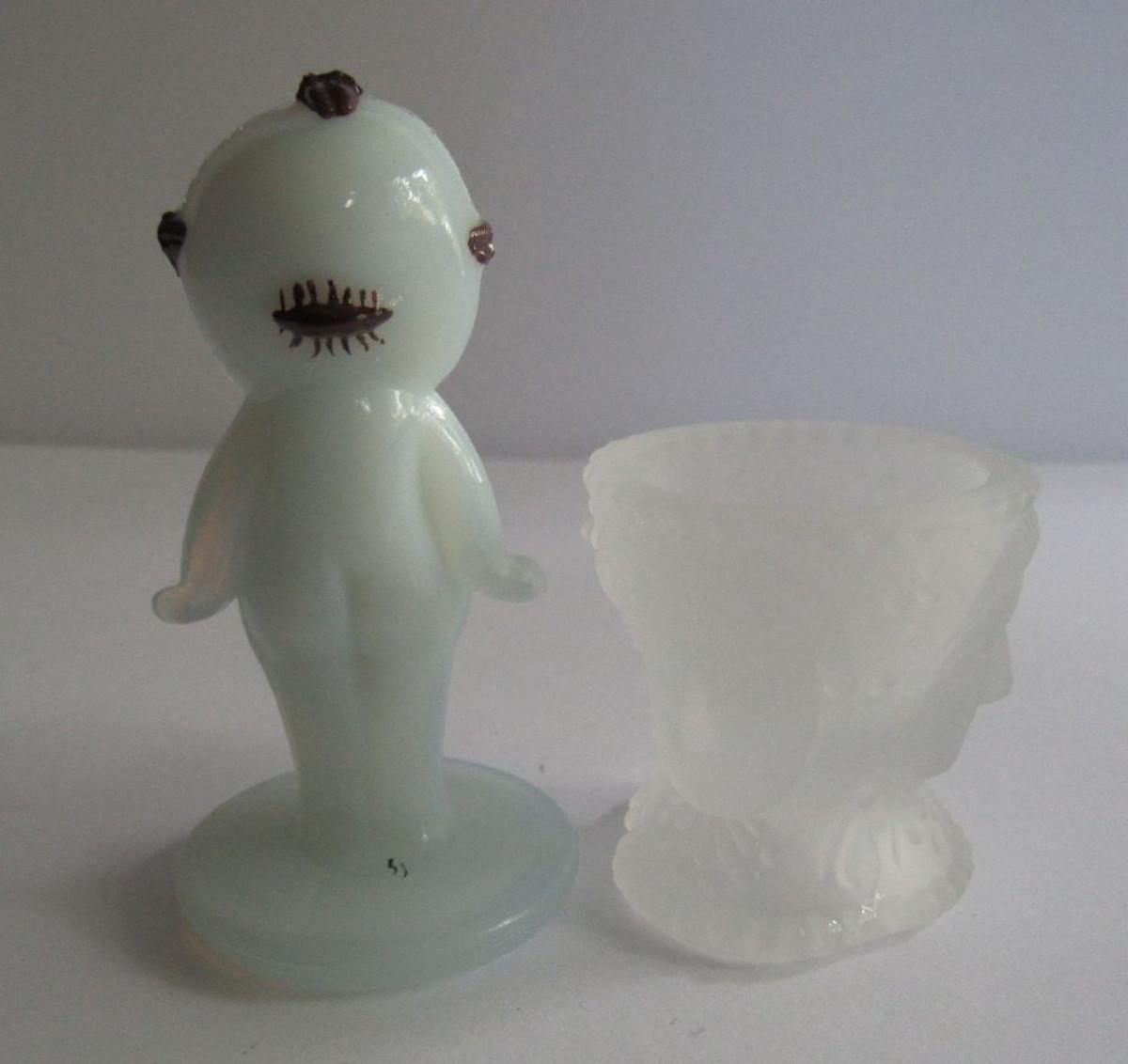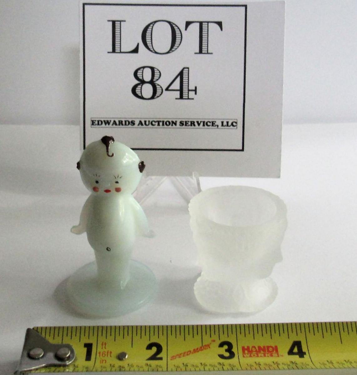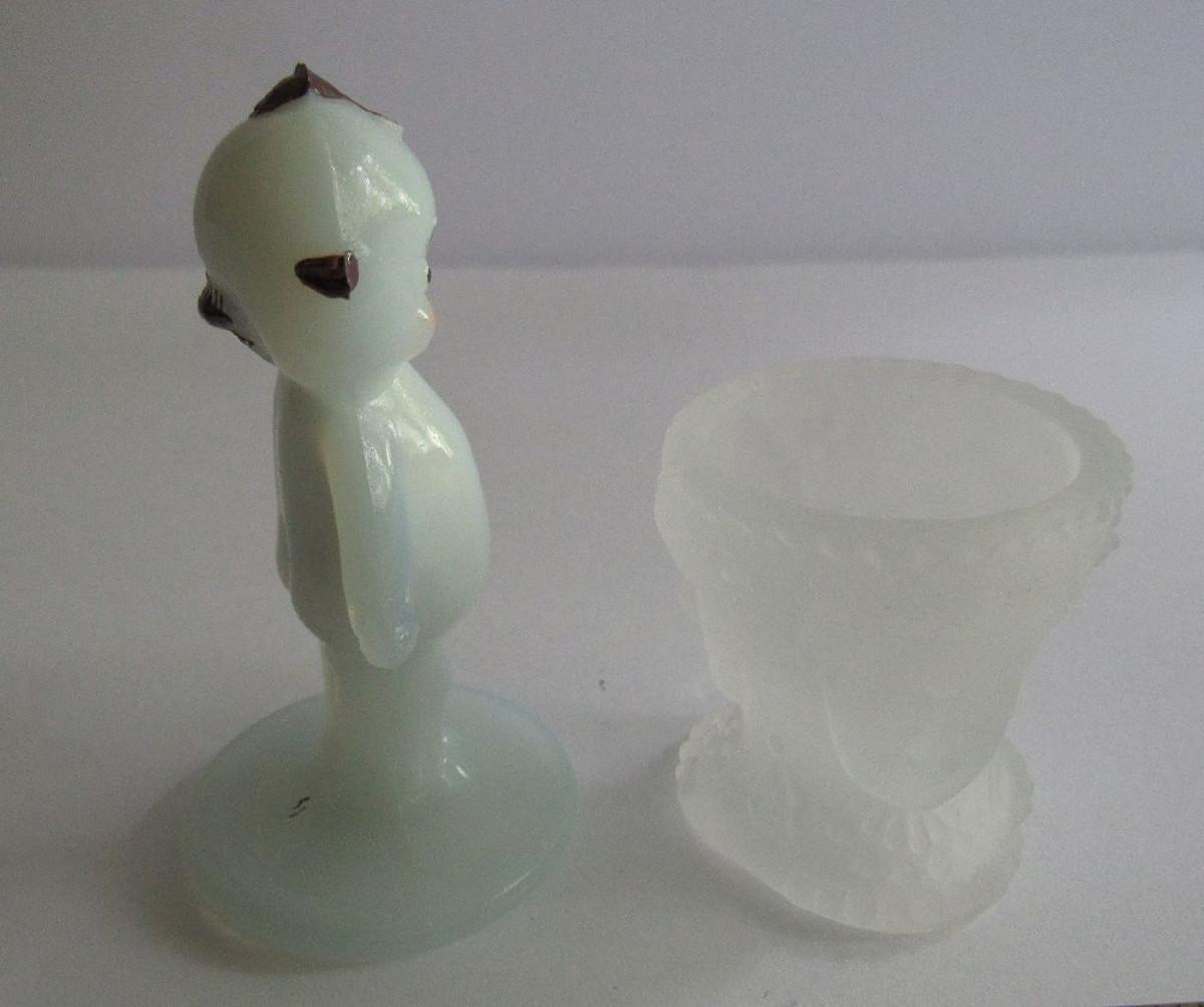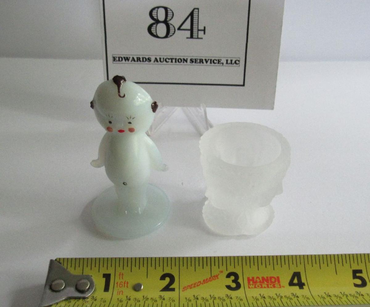 Hard to Find Boyd Glass Hand Painted Kewpie Figurine and LG Wright 3 Face Salt Dip