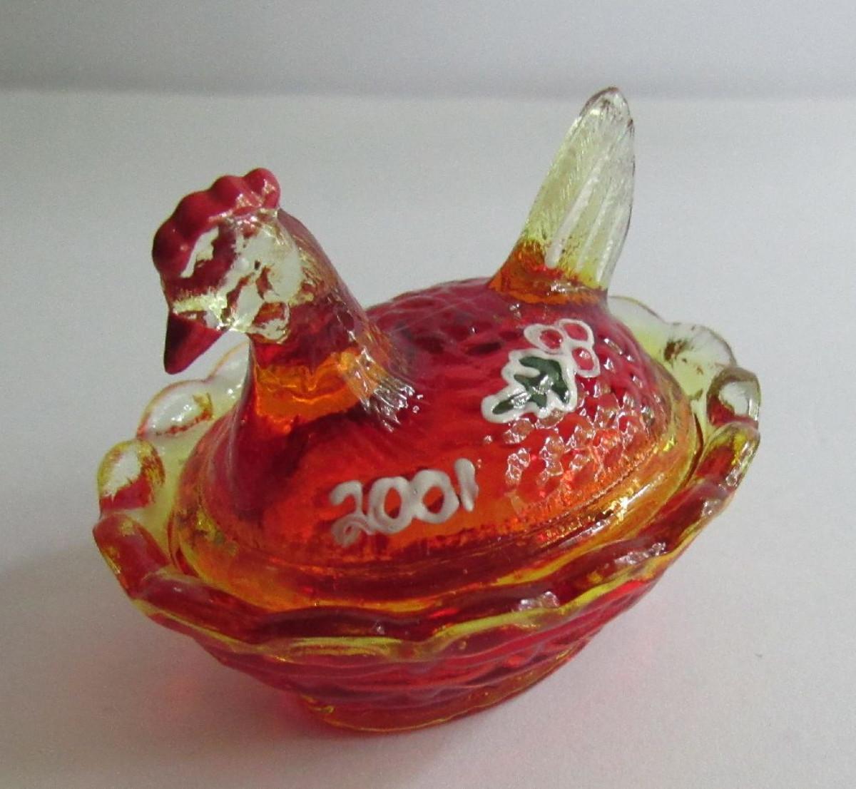 Hard to Find Dated 2001 Hand Painted Boyd Hen on Nest Salt