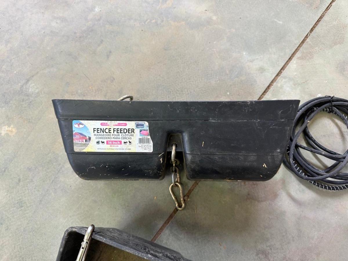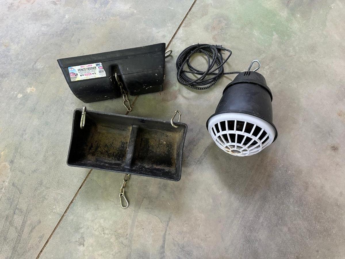 HEAT LAMP AND 2 FENCE FEEDERS
