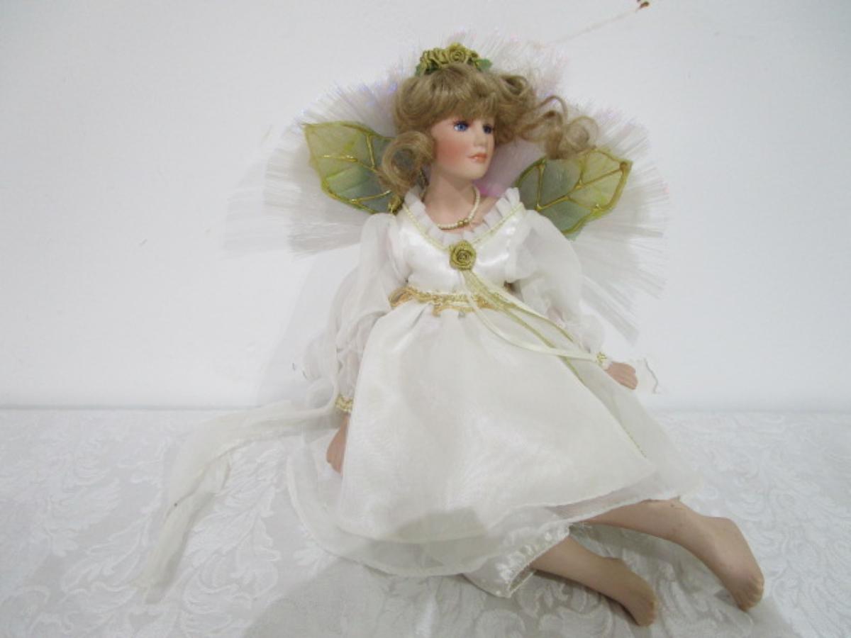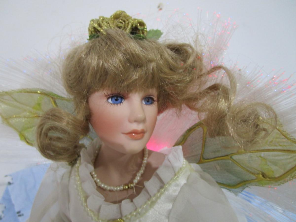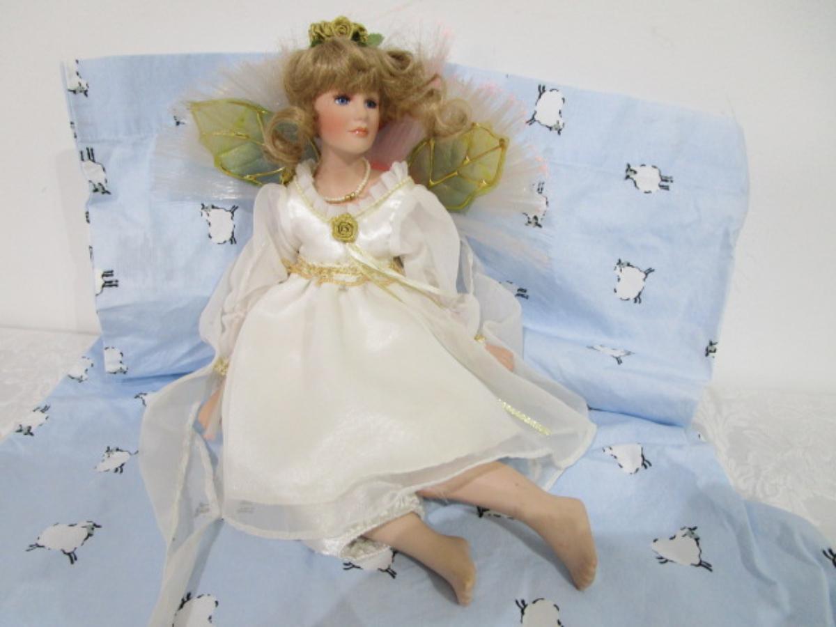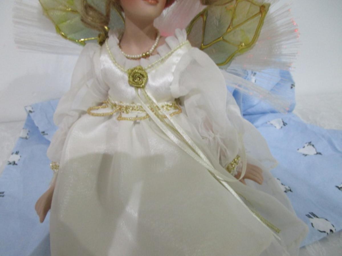 Angel doll with fiber optic wings & porcelain head, arms & legs, Takes 3 AA batteries included, see pictures