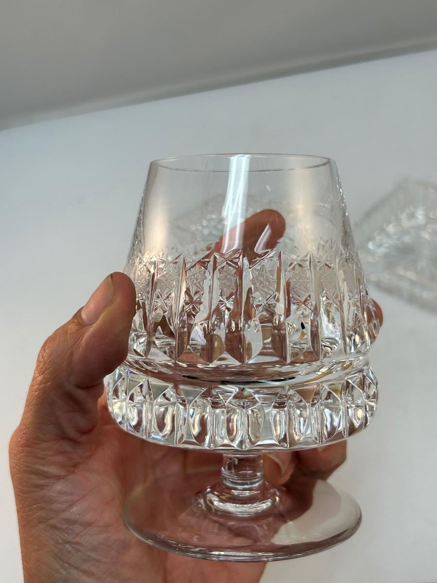 Vintage Cut Crystal Square Ashtrays and Brandy Snifter Stemware Glass. In good condition.
