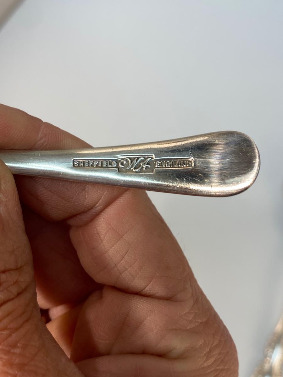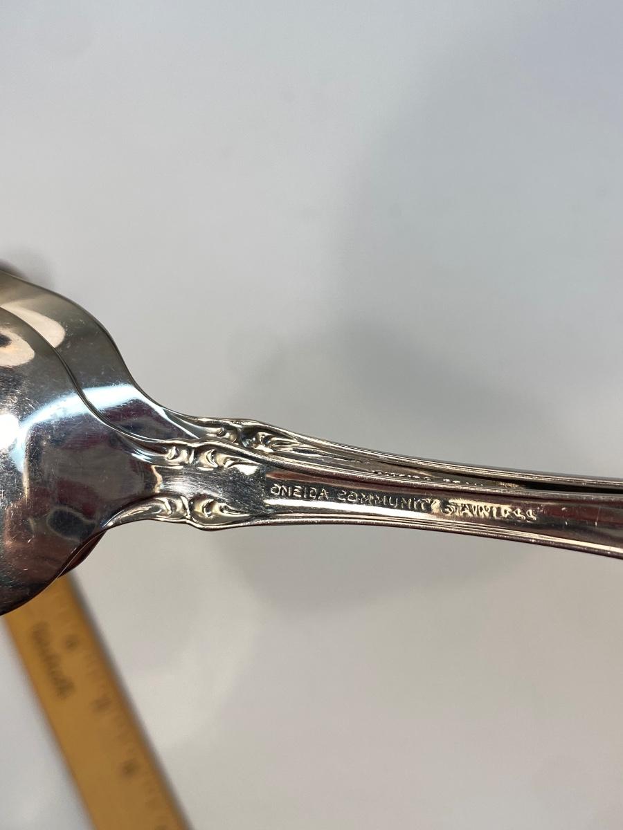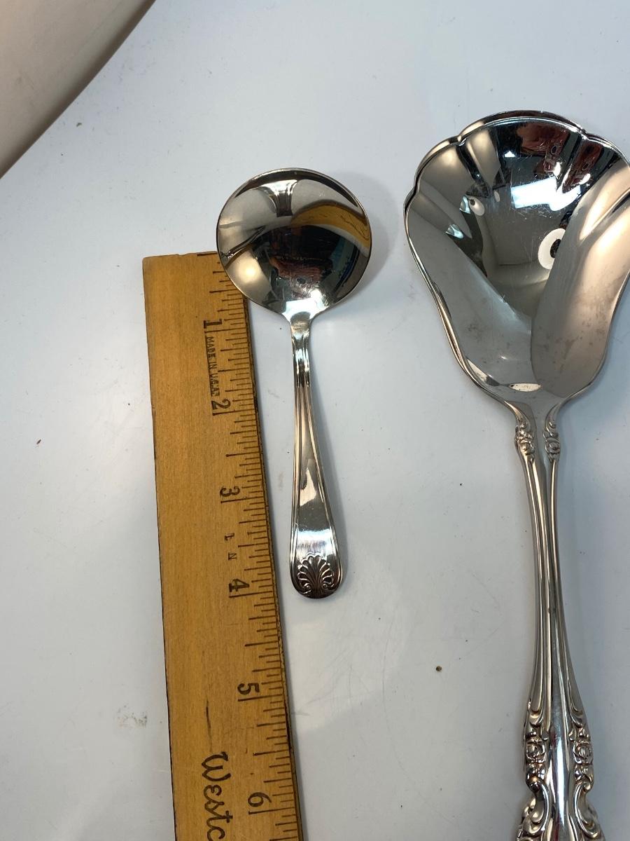 Pair of Scalloped Serving Spoons and Small Condiment Jelly Spoon. Good condition.