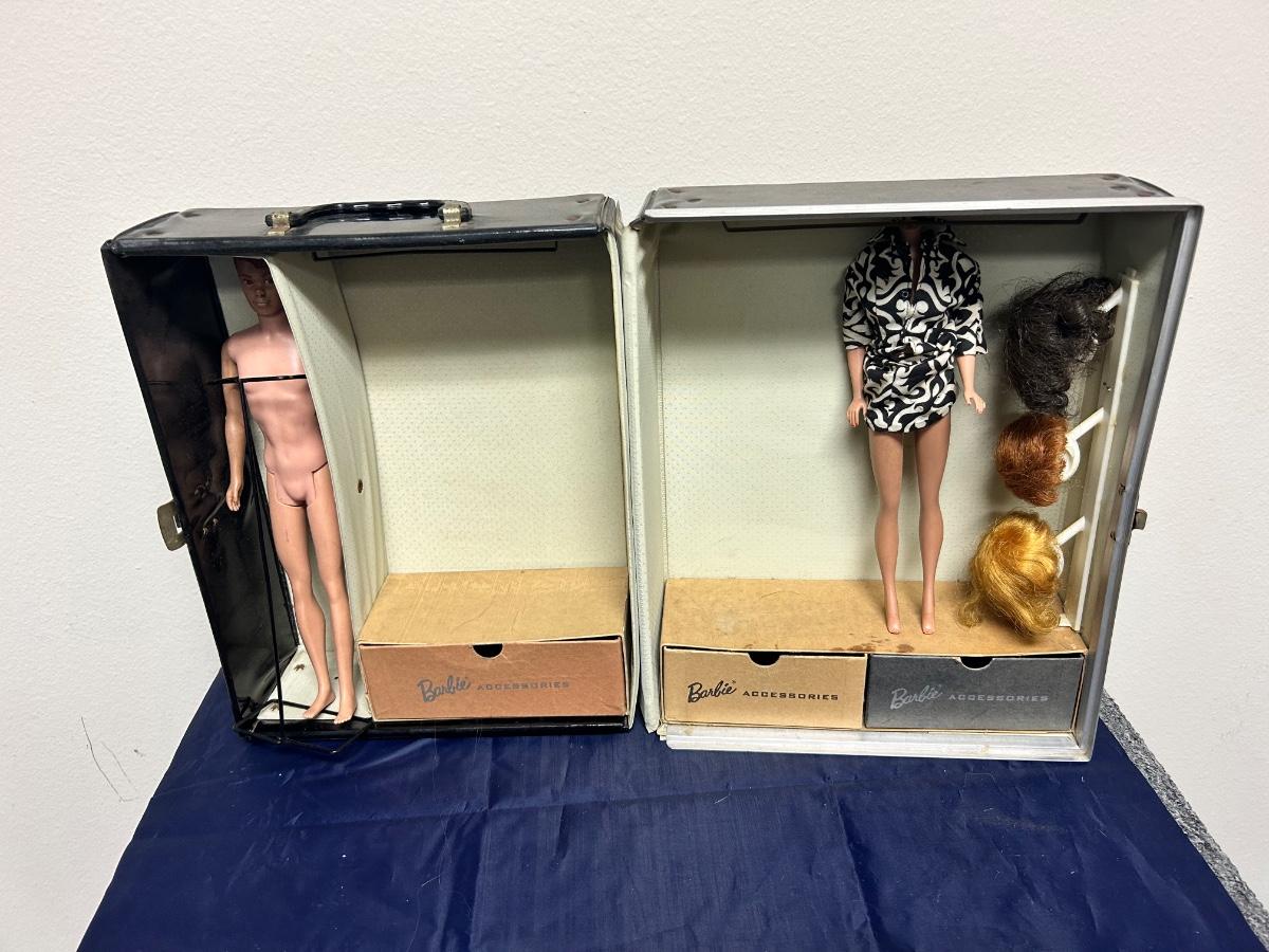 Vintage Vinyl Barbie Doll Storage Case with Ken Barbie Midge with Wigs