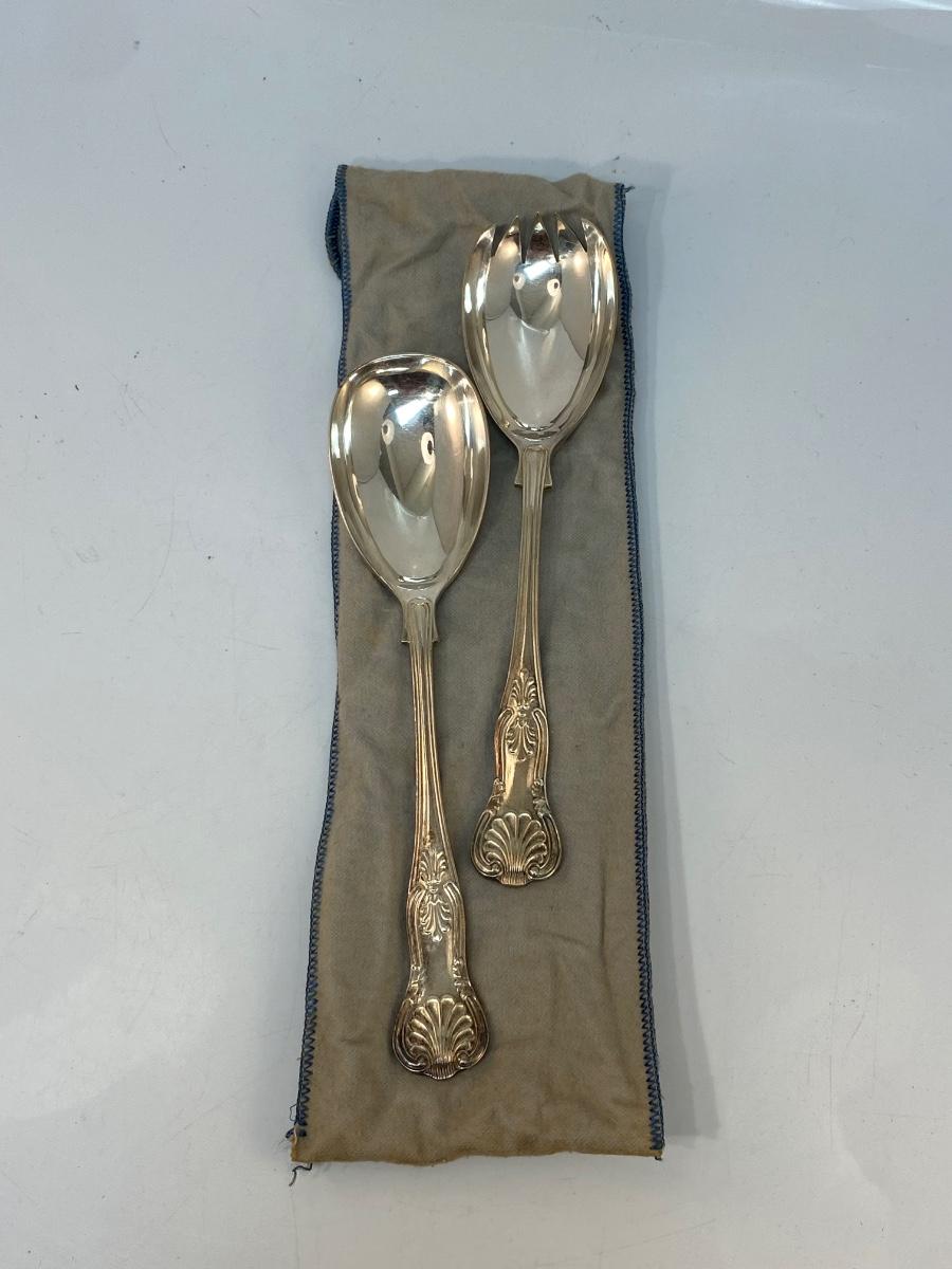 Vintage Sheffield England Silver Plate Serving Salad Tongs Spoons with Cloth Case
