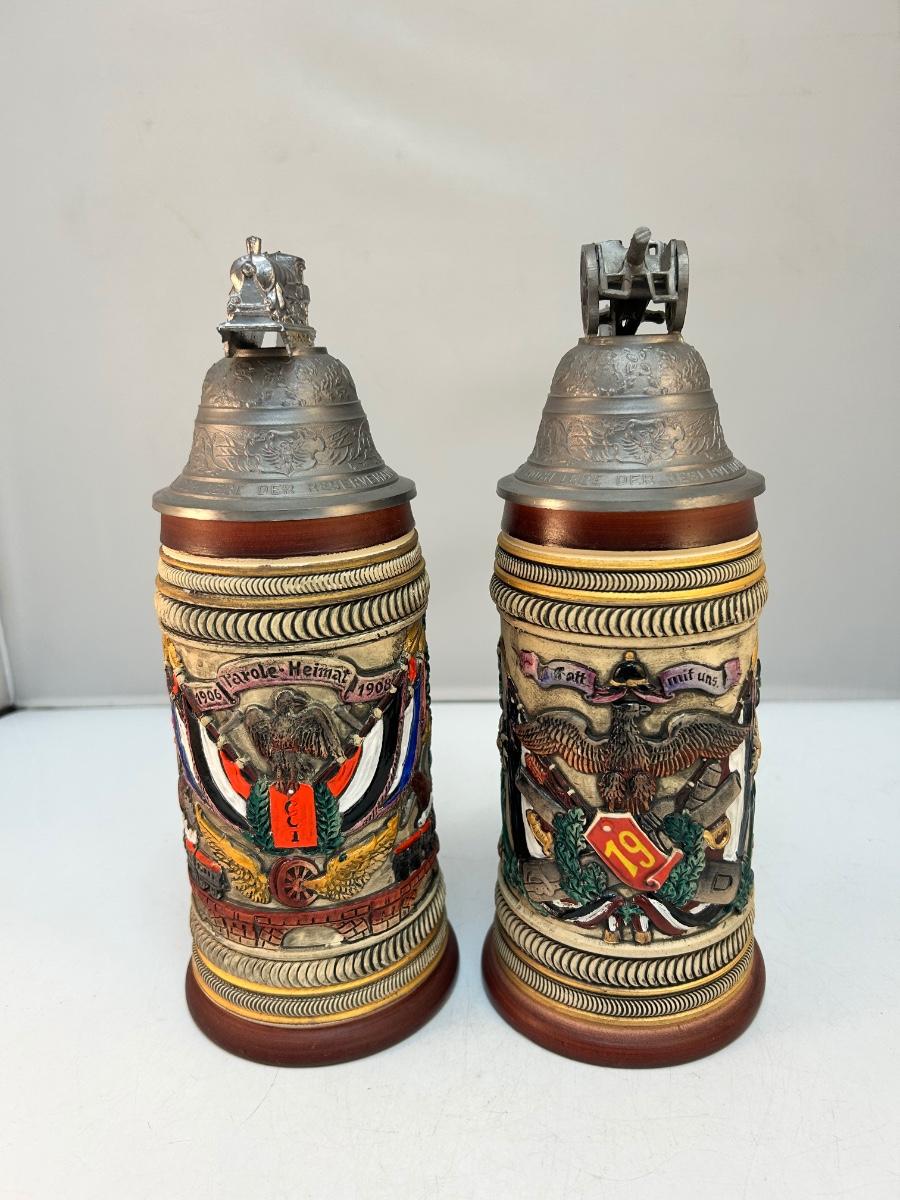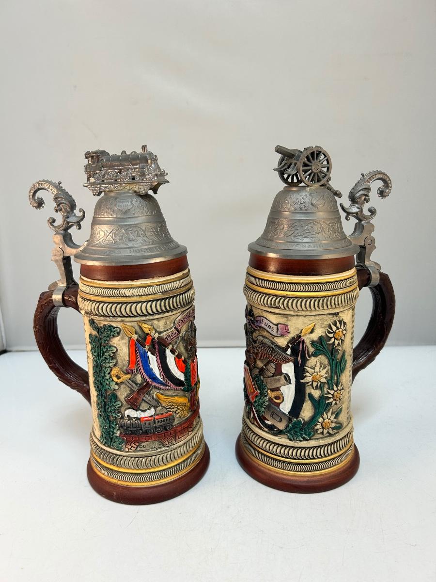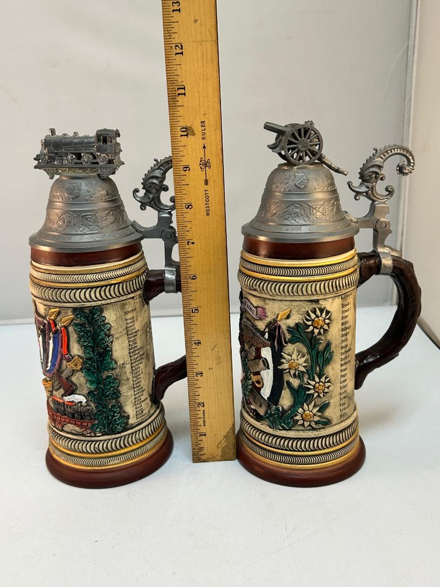 Pair of Vintage Lidded Commemorative German Beer Steins