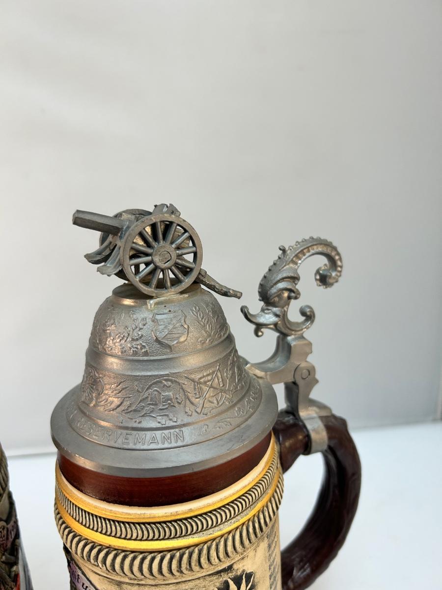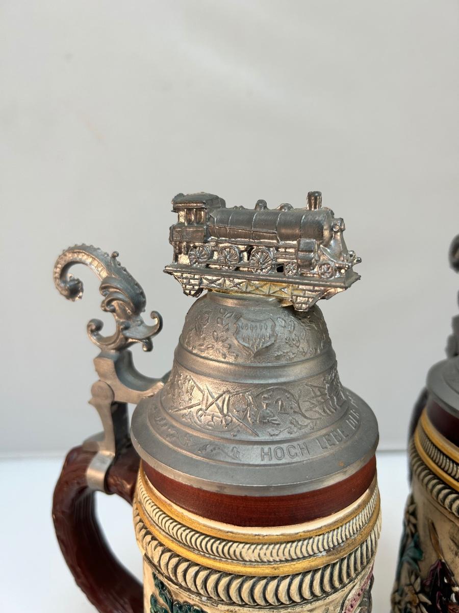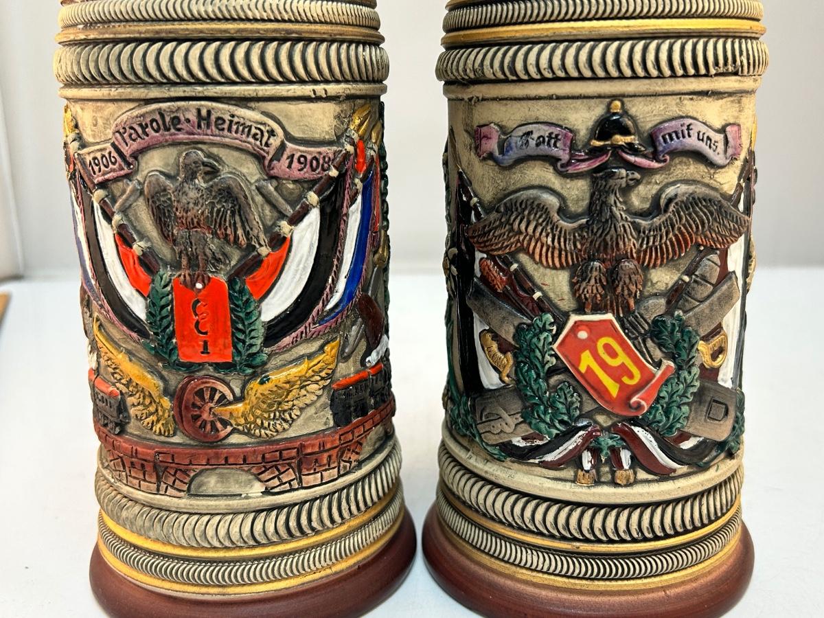 Pair of Vintage Lidded Commemorative German Beer Steins