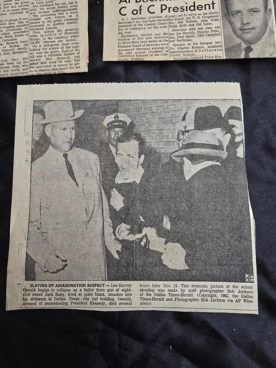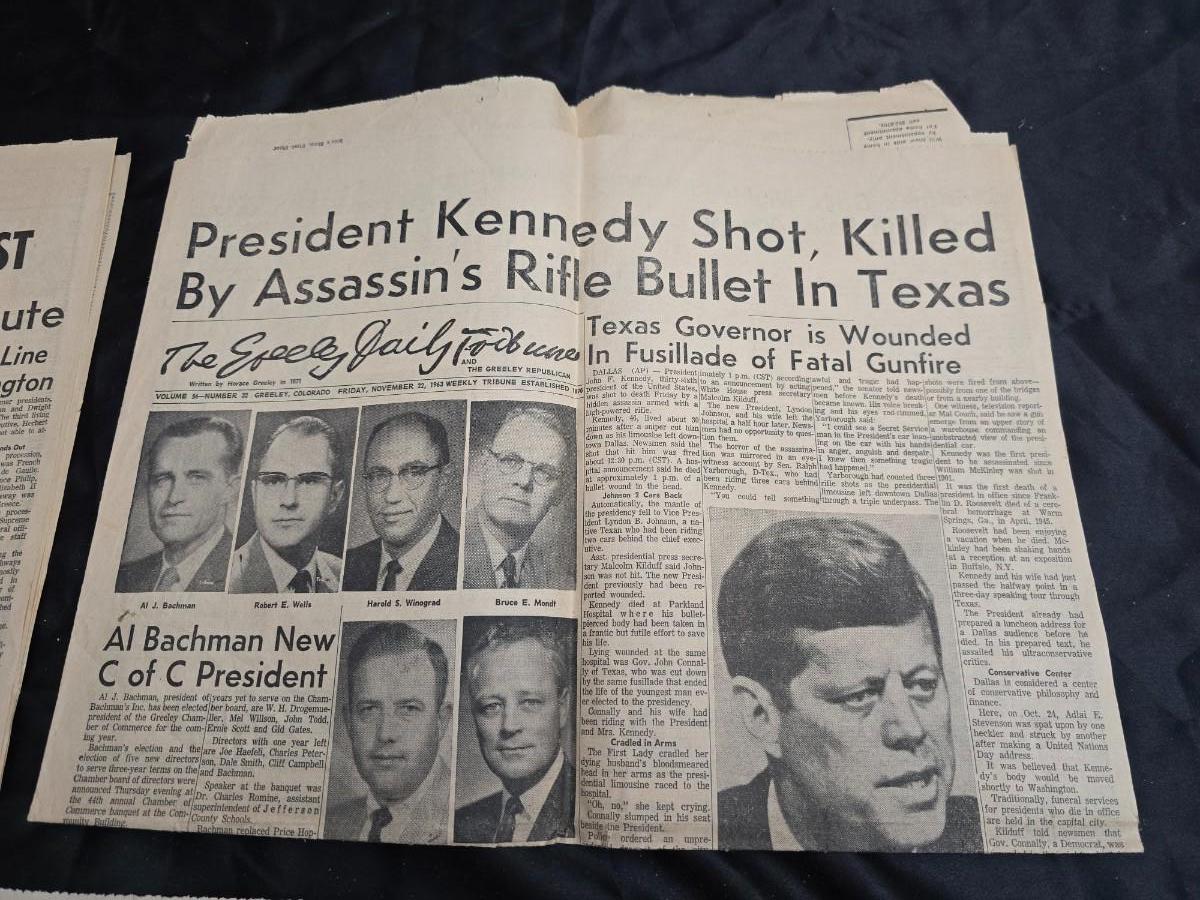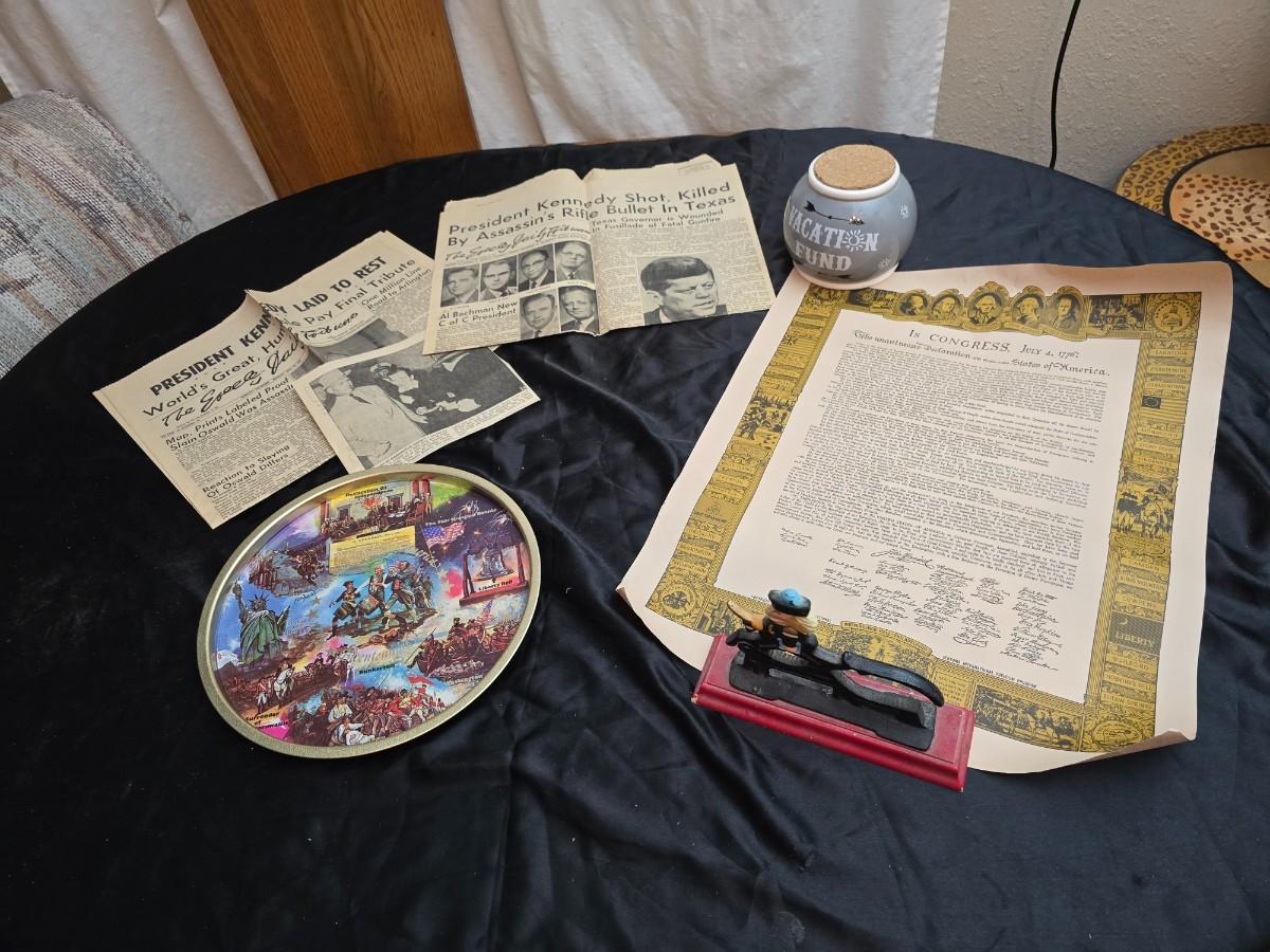 Vintage newspaper articles about Kennedy shooting - Declaration of United States - Neat cast nutcracker - and more