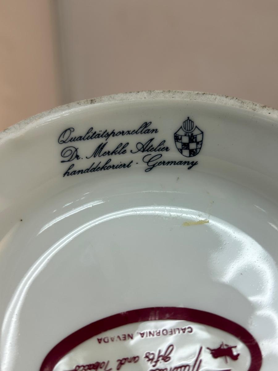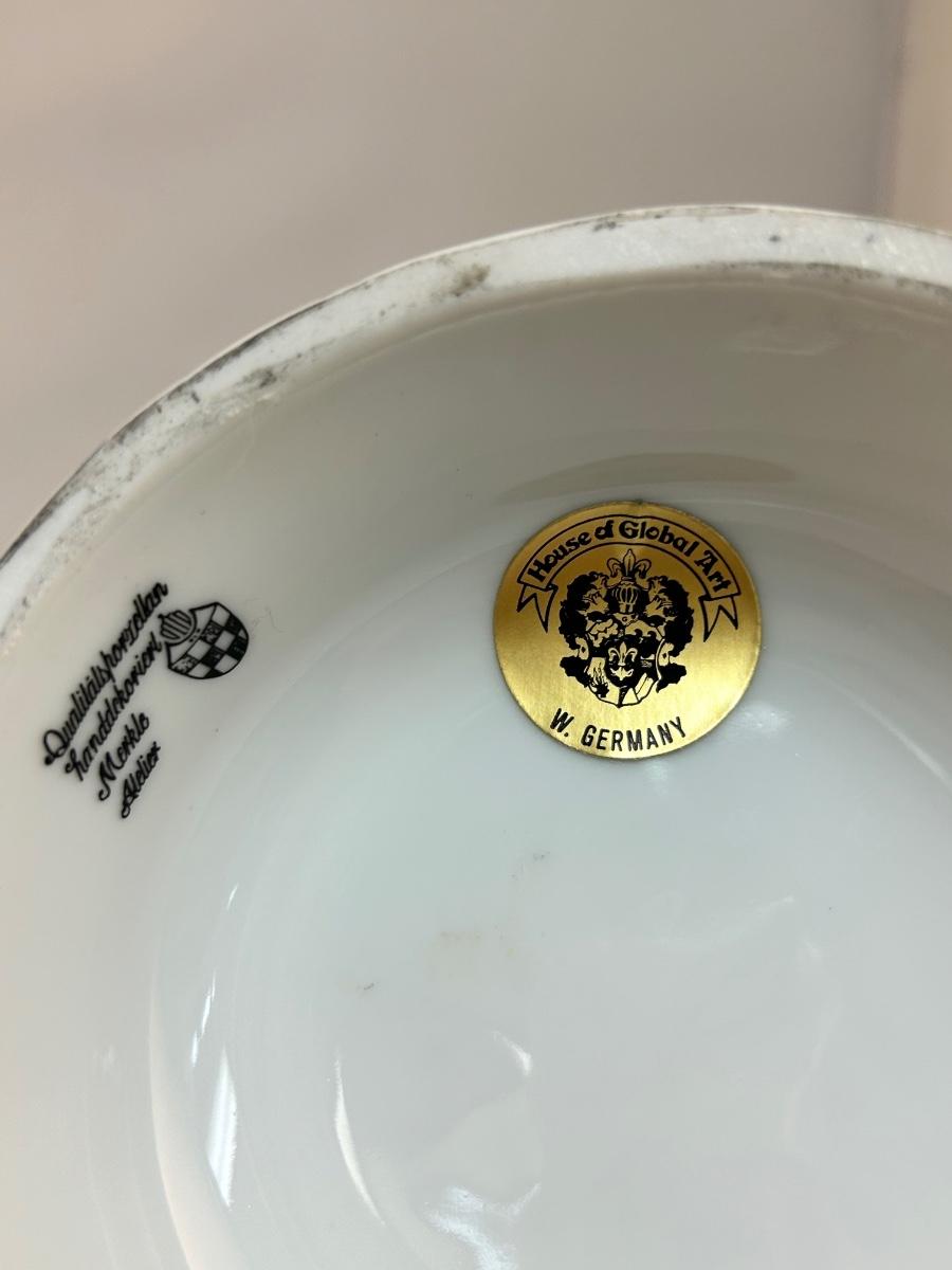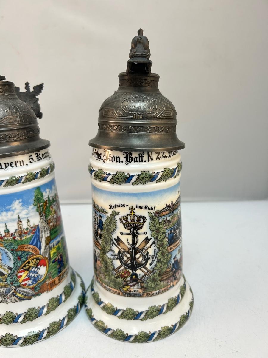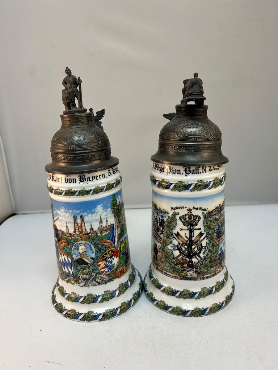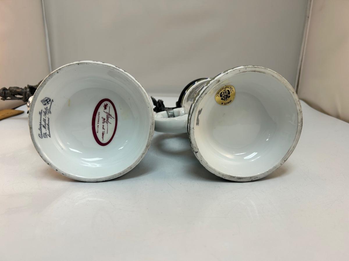 Pair Of Colorful White Ceramic Lidded German Beer Steins