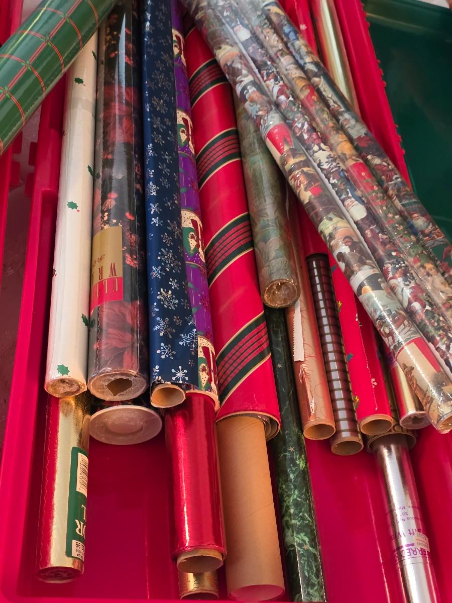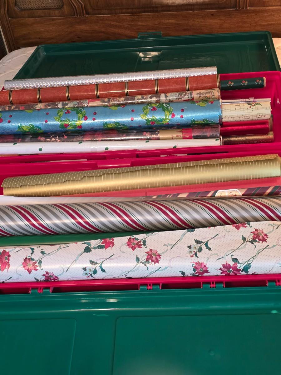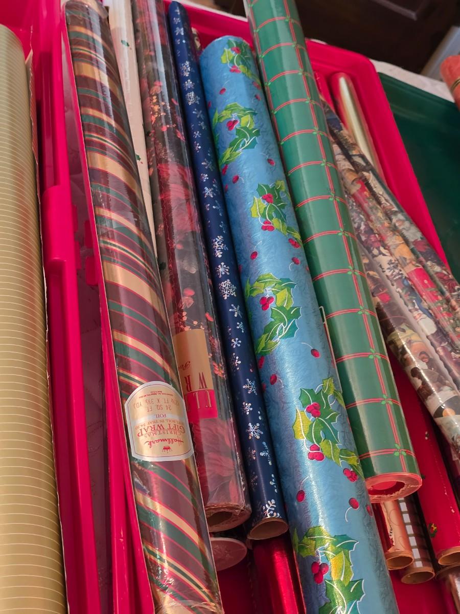 Christmas planning early! Two totes filled with beautiful holiday wrap, some new in packaging!