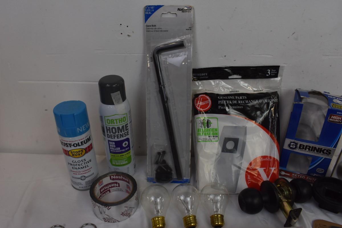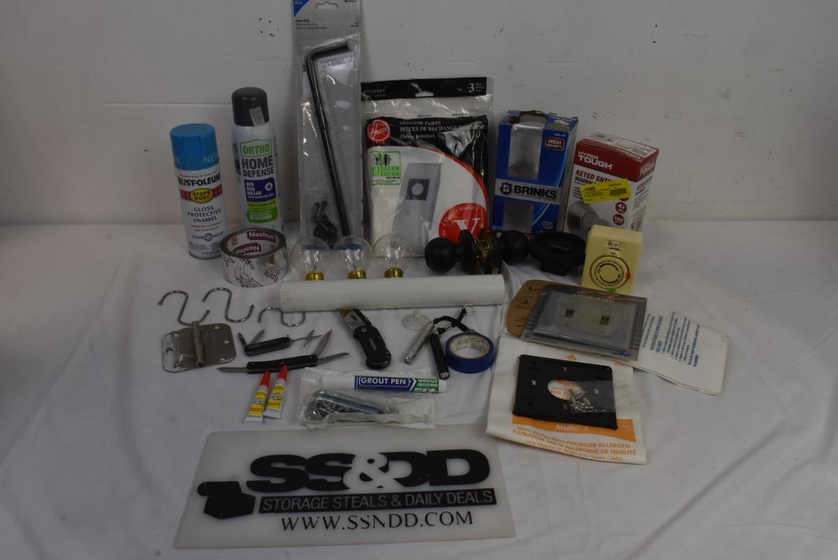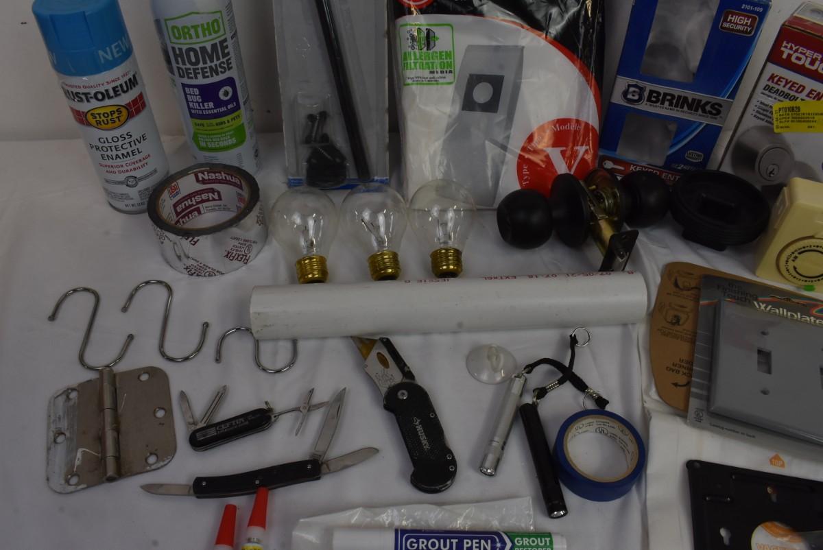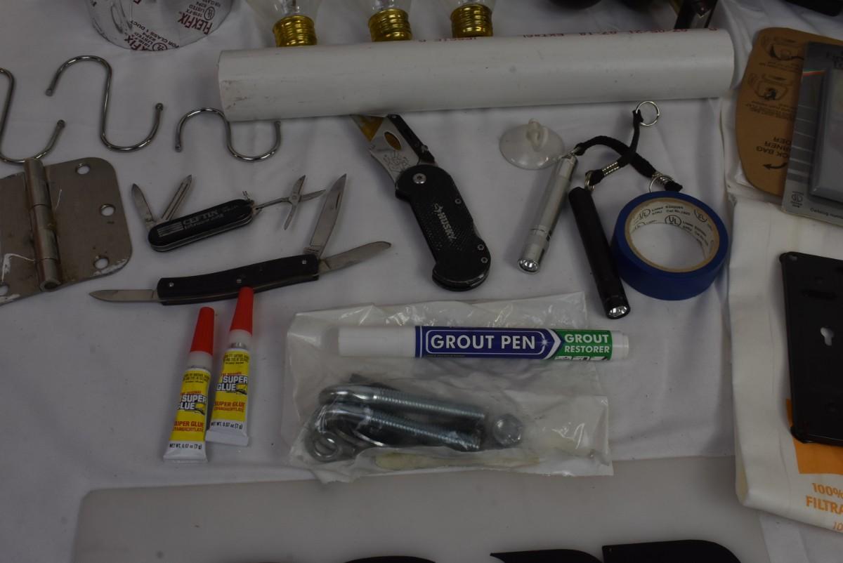 Home Improvement Lot: PVC, Doorknobs, Pocket Knives, Tape, Pocket Knives, etc