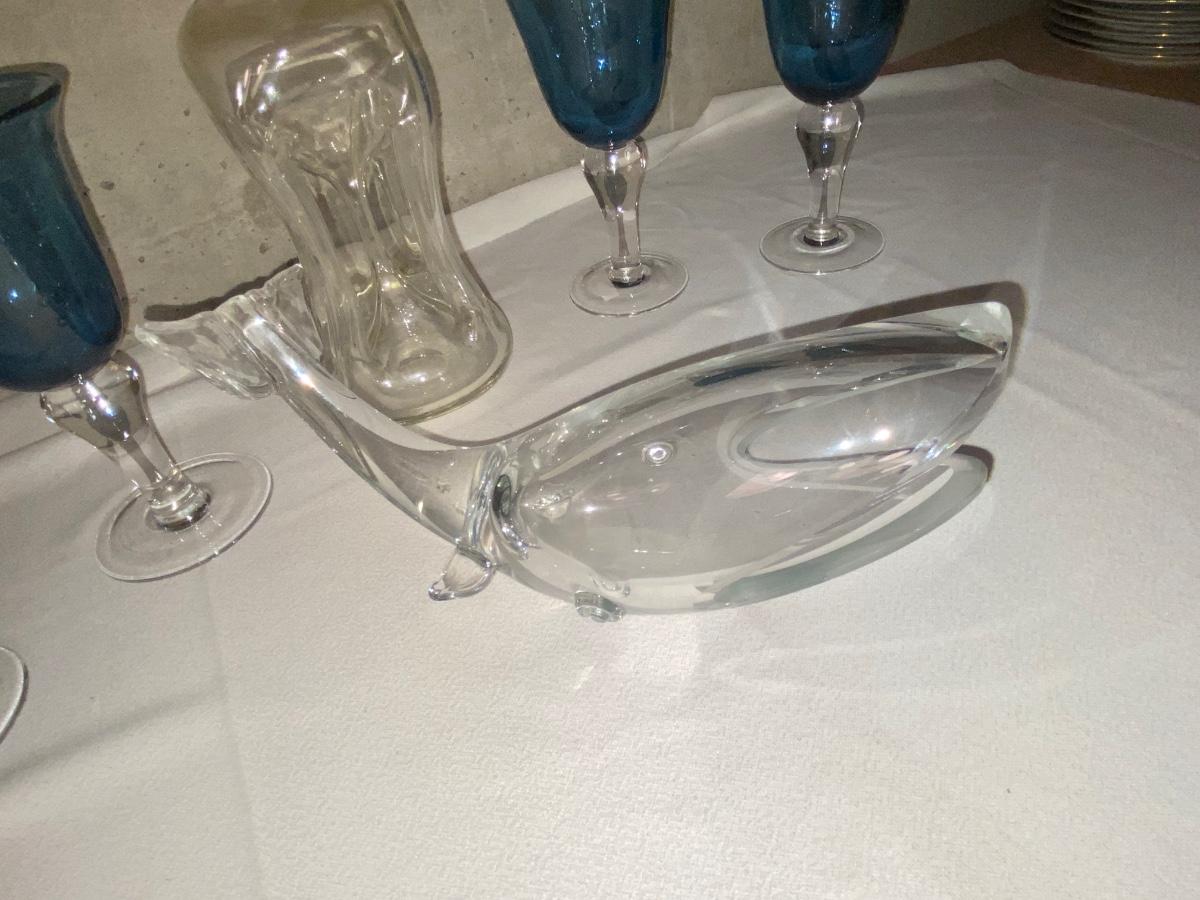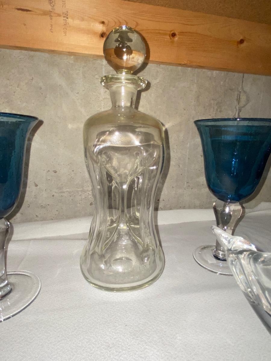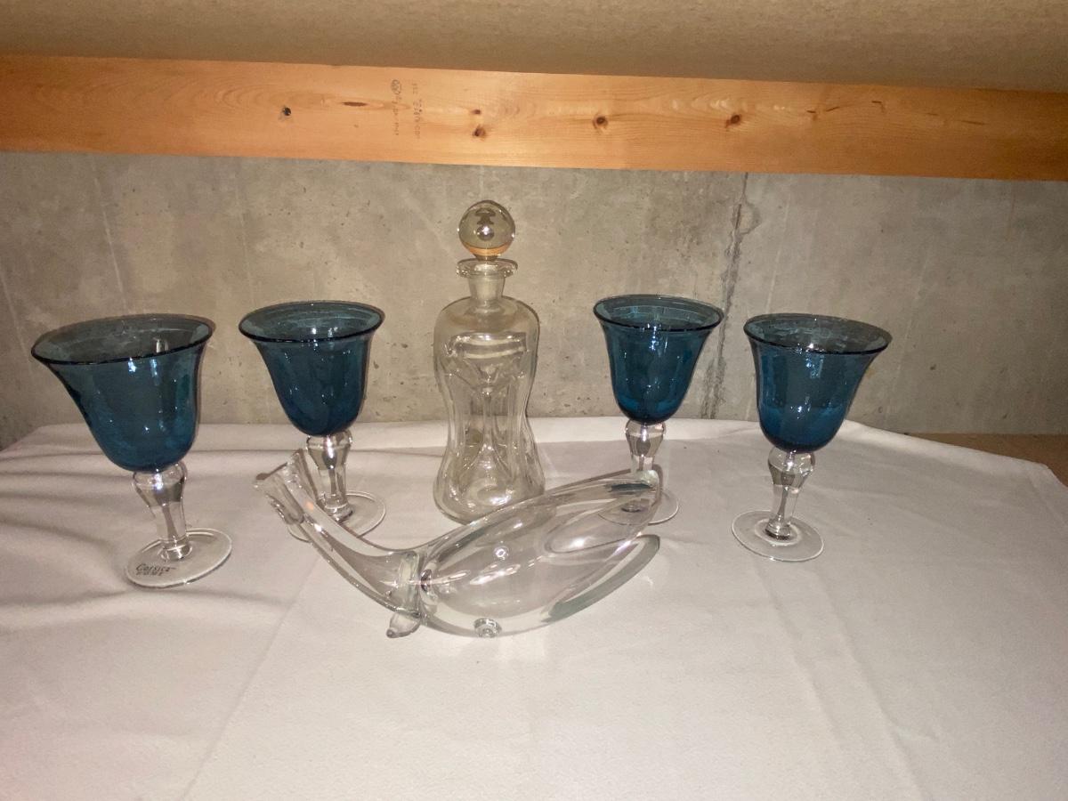 HOUR GLASS SHAPED DECANTER, CORSICA HOME GOBLETS, & HEAVY GLASS WHALE
