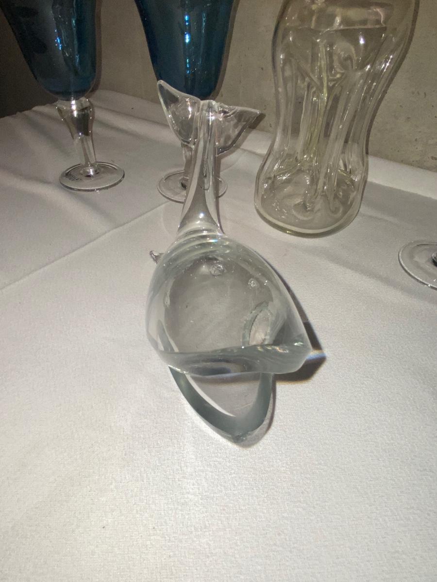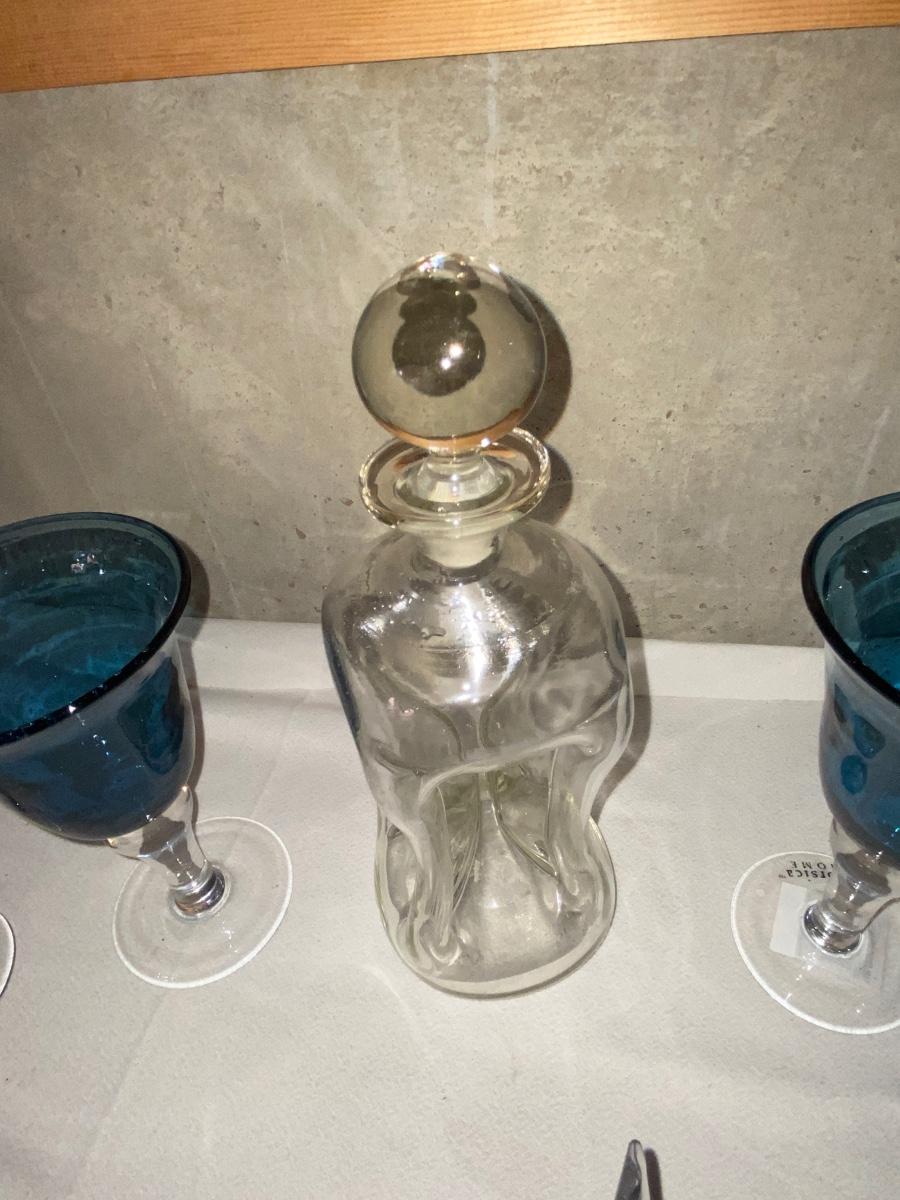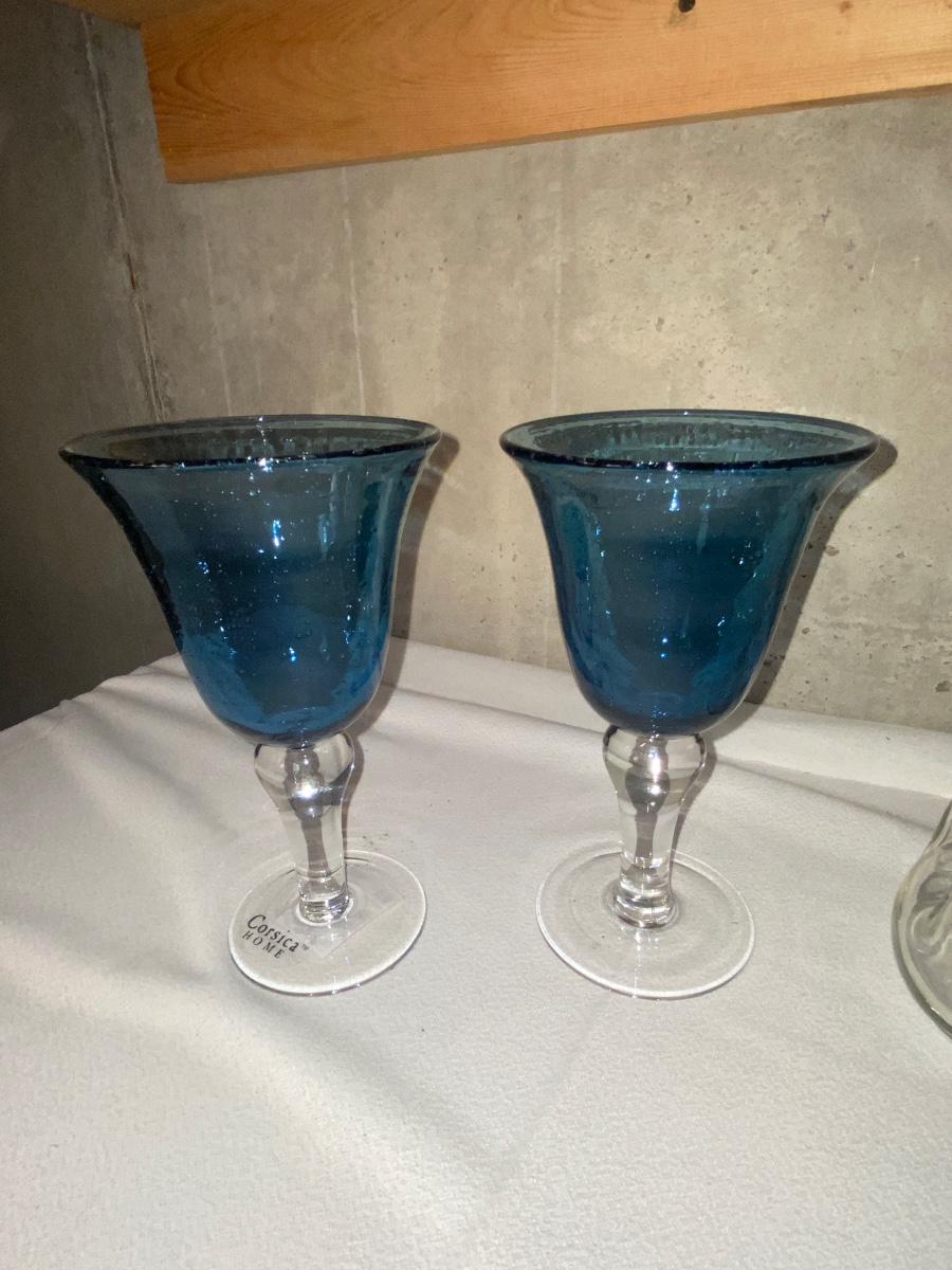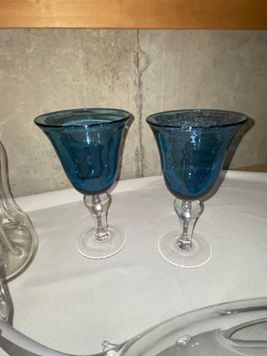 HOUR GLASS SHAPED DECANTER, CORSICA HOME GOBLETS, & HEAVY GLASS WHALE