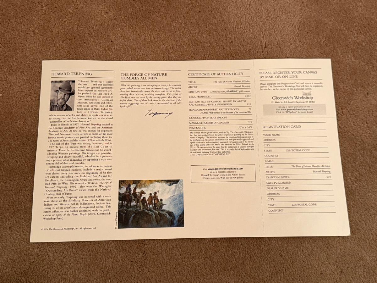 This is a limited edition signed Howard Terpning giclee canvas print, Includes the original registration certificate.