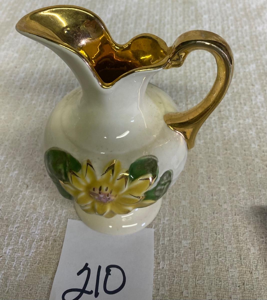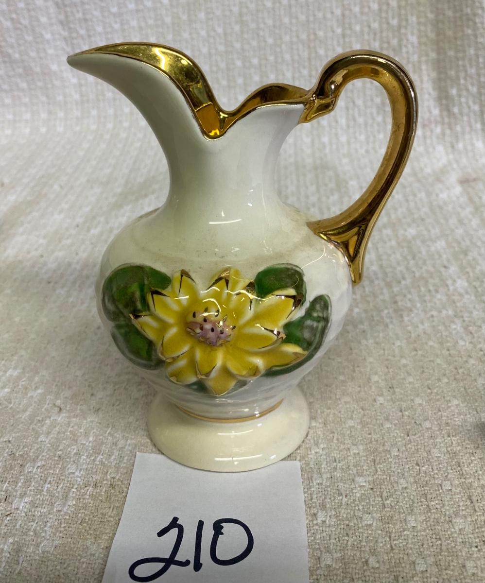 Hull Art Yellow Water Lily Vase with Gold Handle