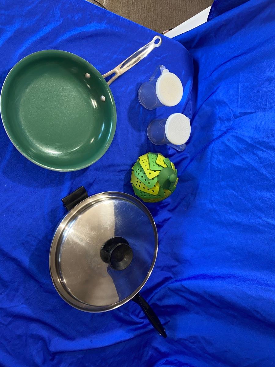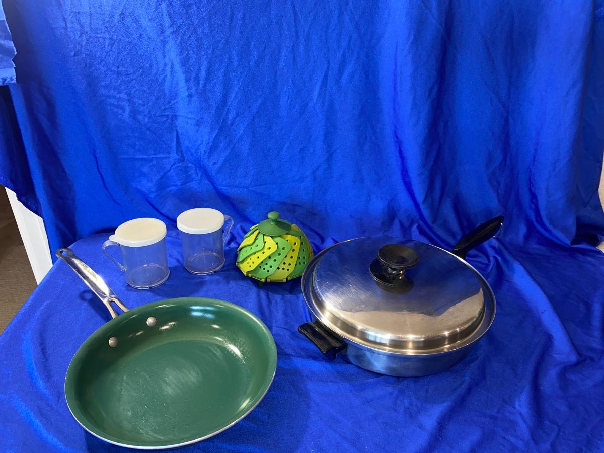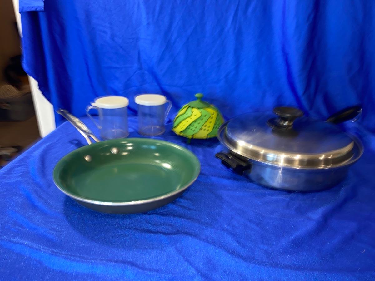 ORGREENIC FRYING PAN, HEAVY STAINLESS FRYING PAN, STEAMER AND SHAKERS