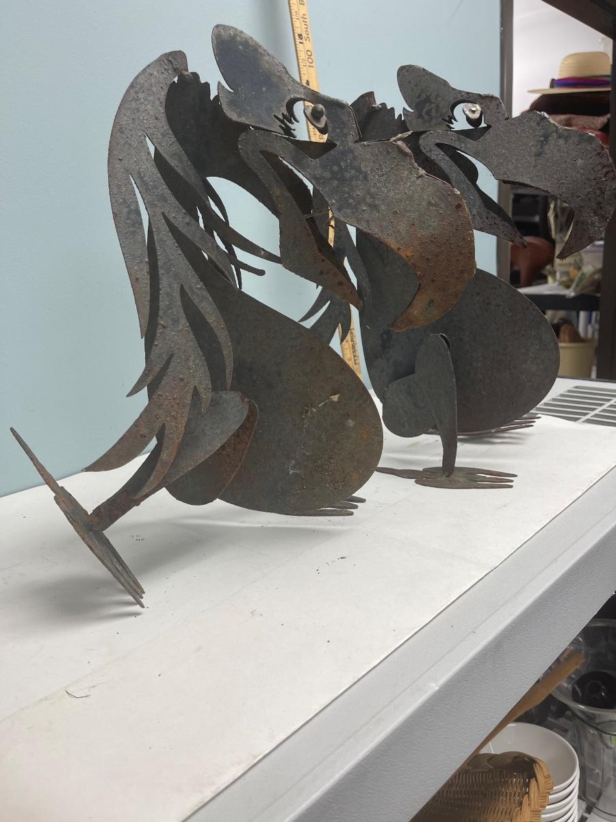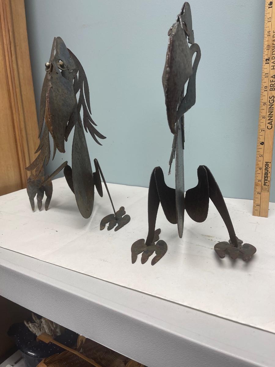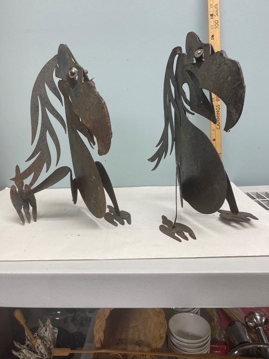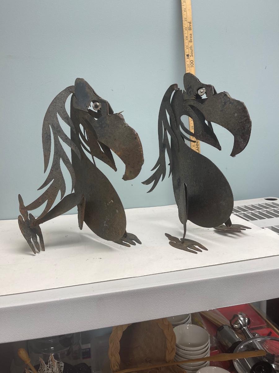 Pair of Metal Garden Yard Art Birds Vultures. In weathered condition.