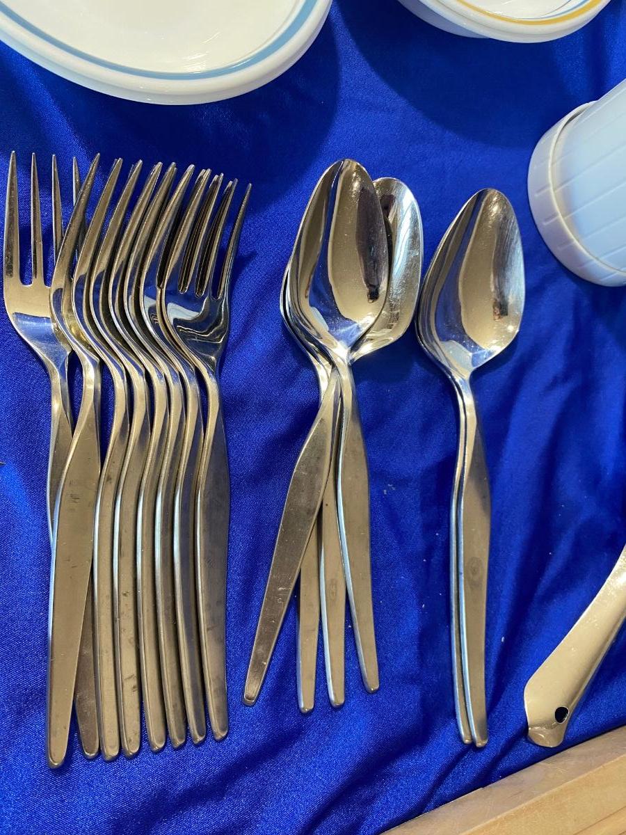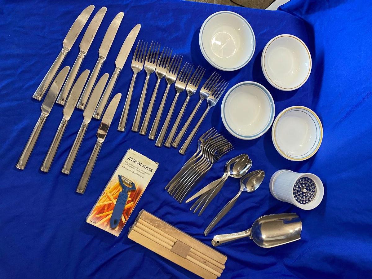 NORITAKE FLATWARE, FARBERWARE FLATWARE, SMALL CORELLE ICE CREAM BOWLS AND MORE