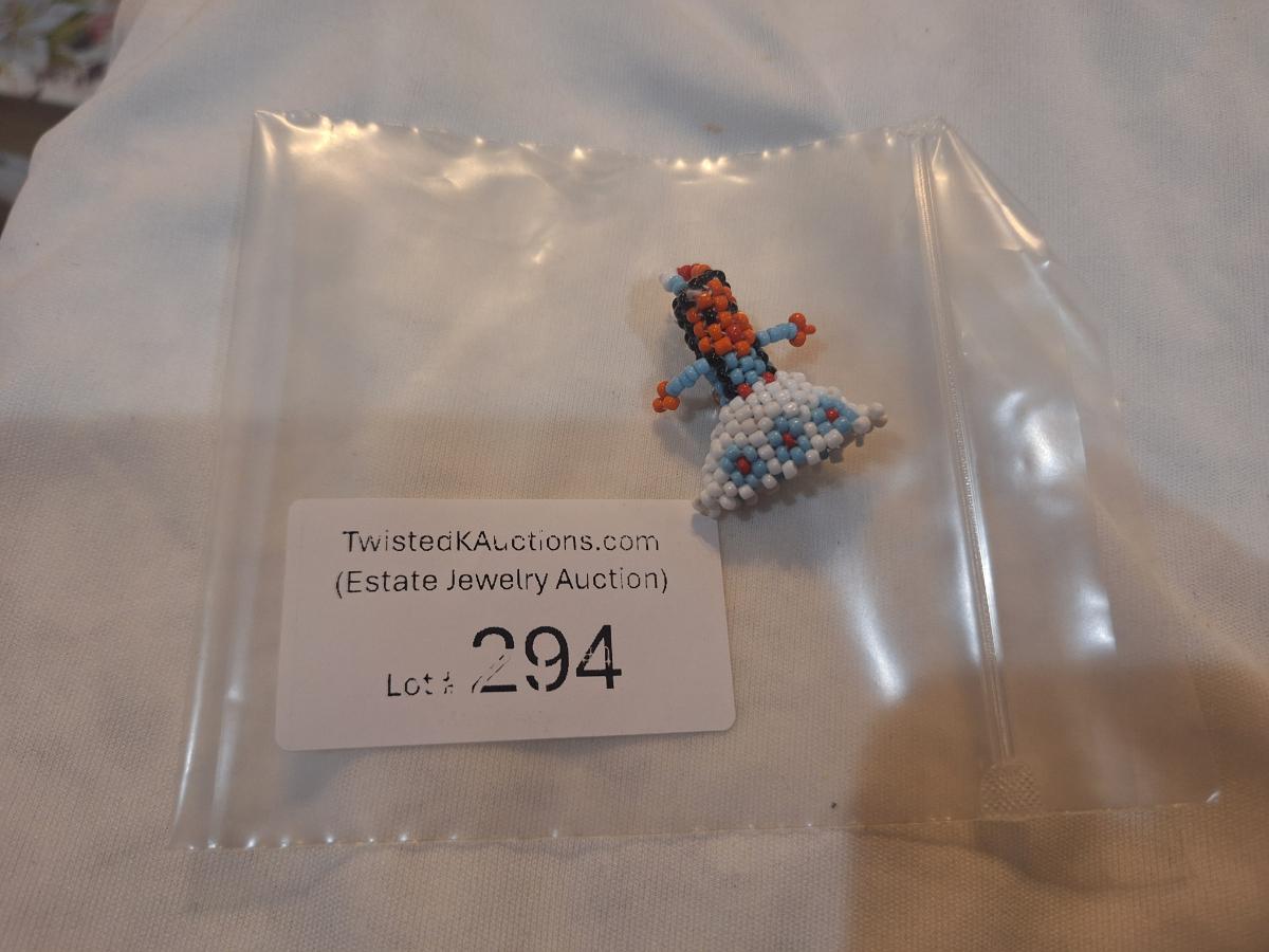 Indian seed bead brooch girls in dress