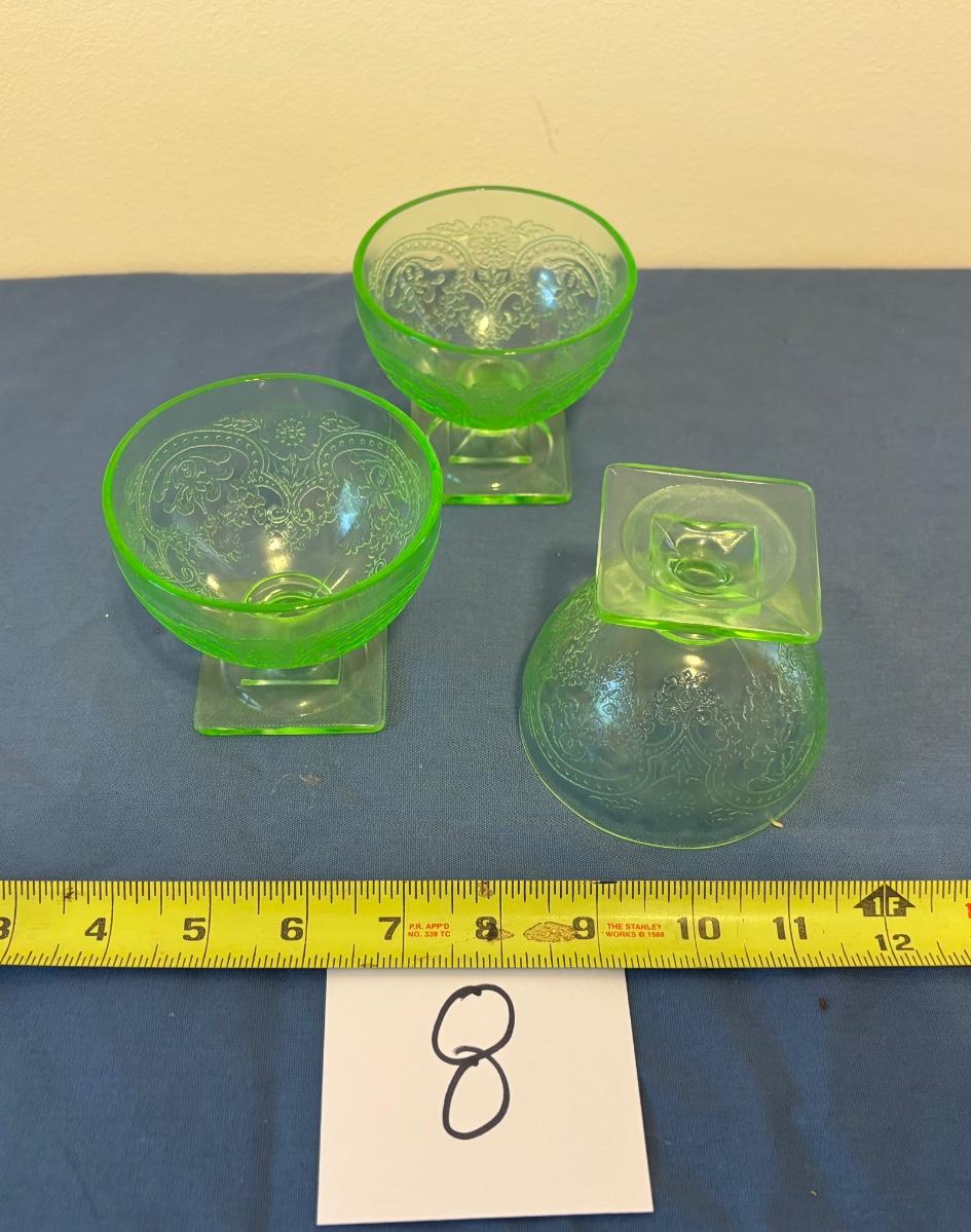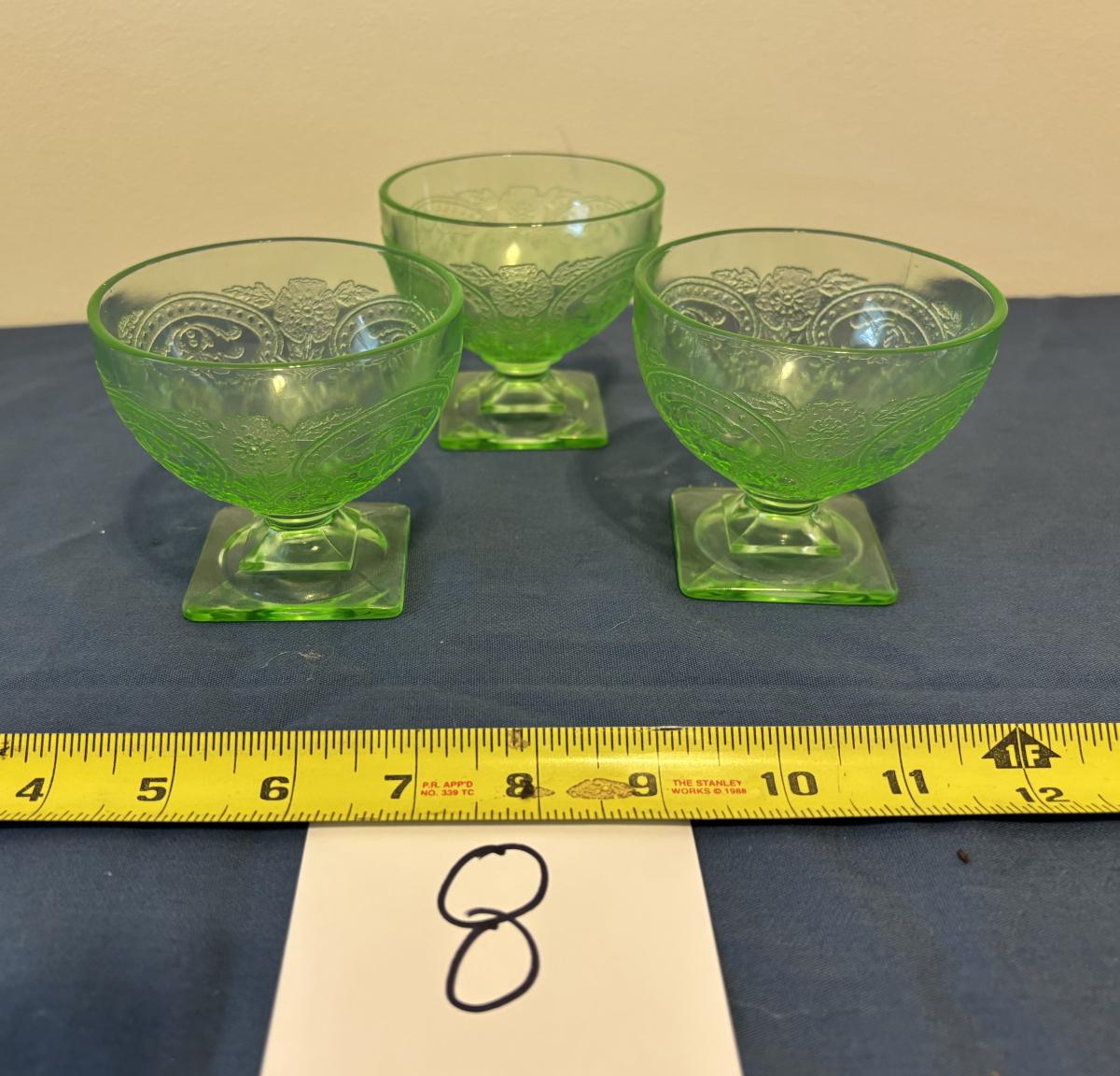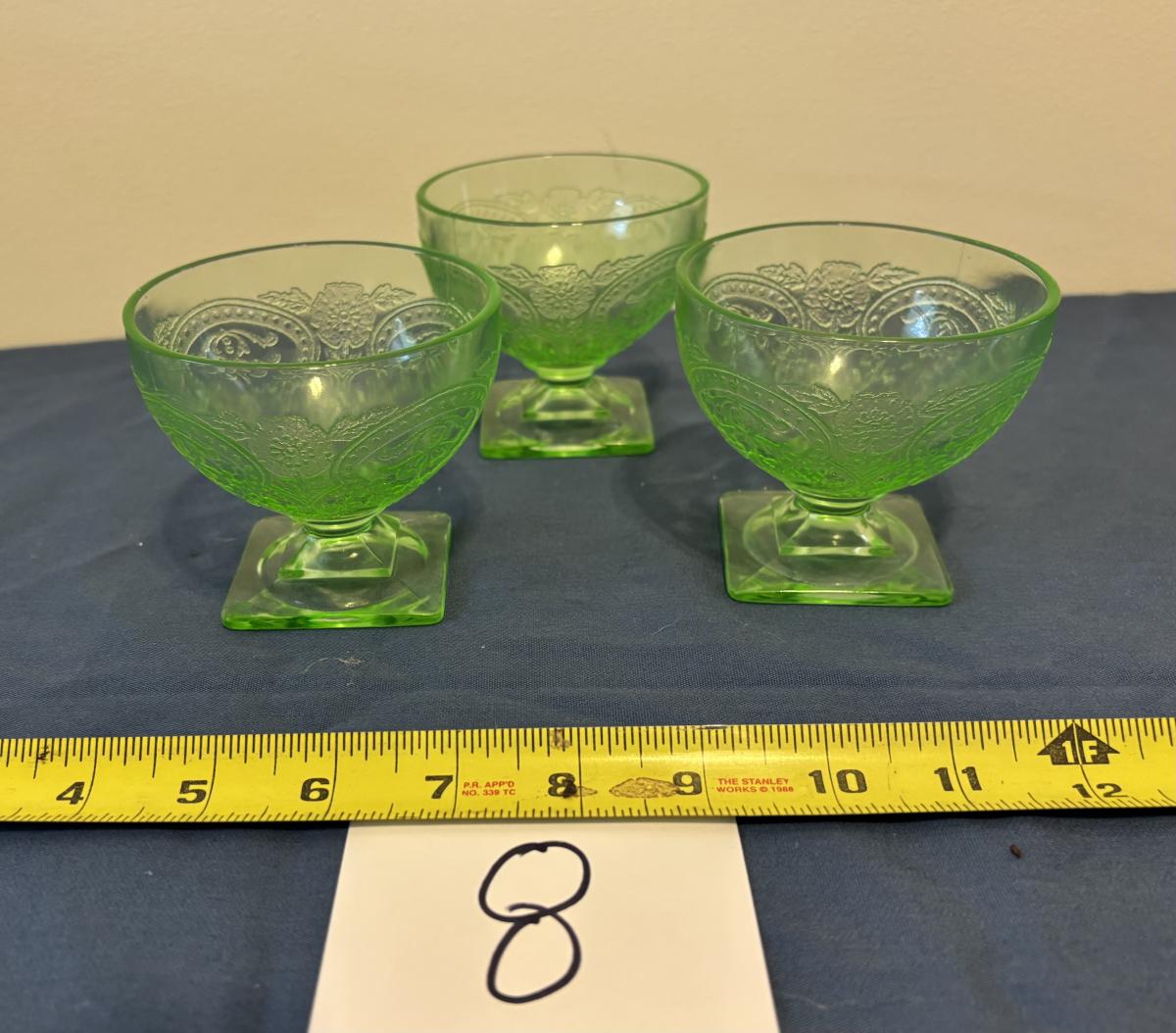 Indiana Green Depression Horseshoe Pattern Sherbet Dishes