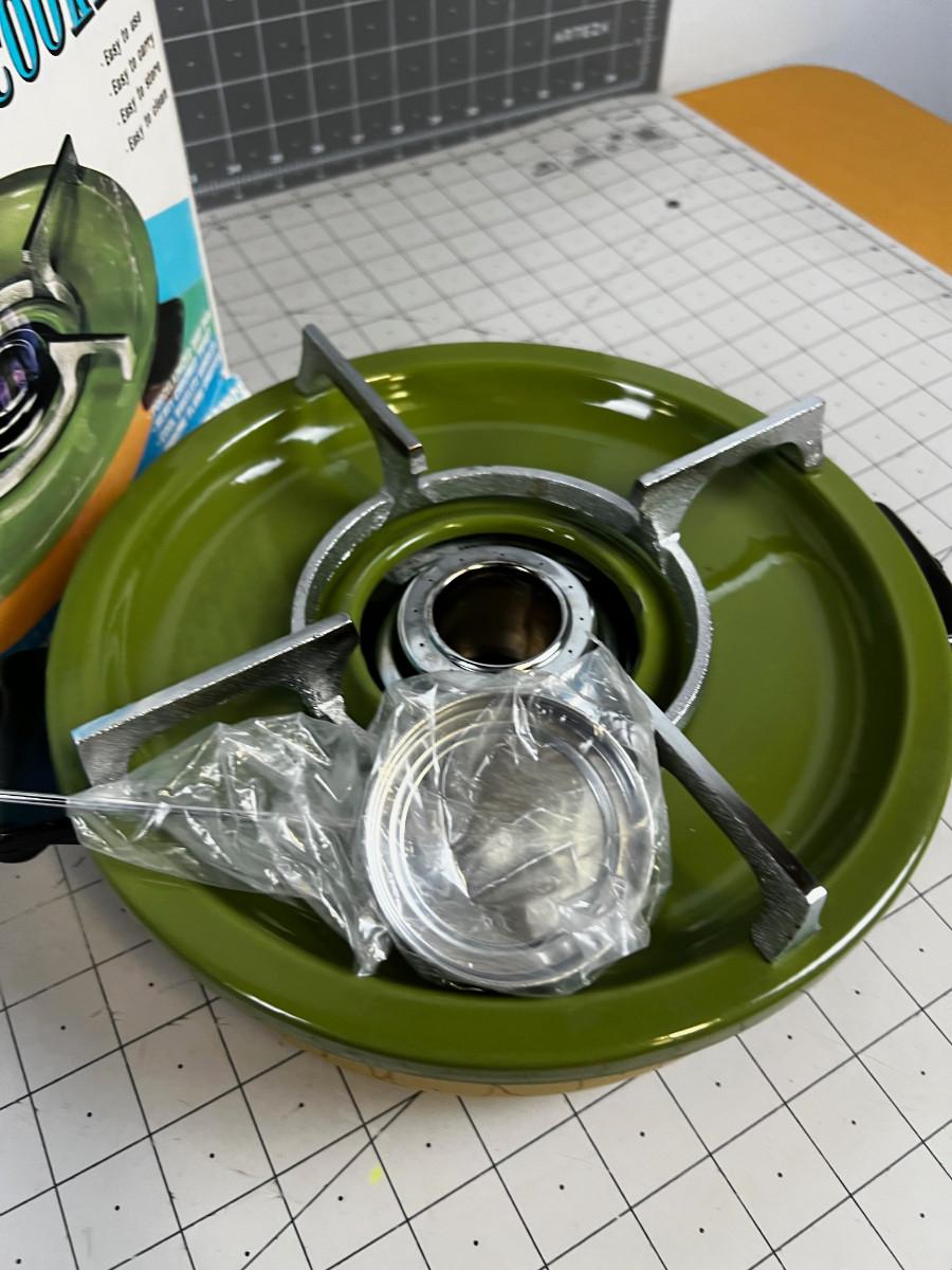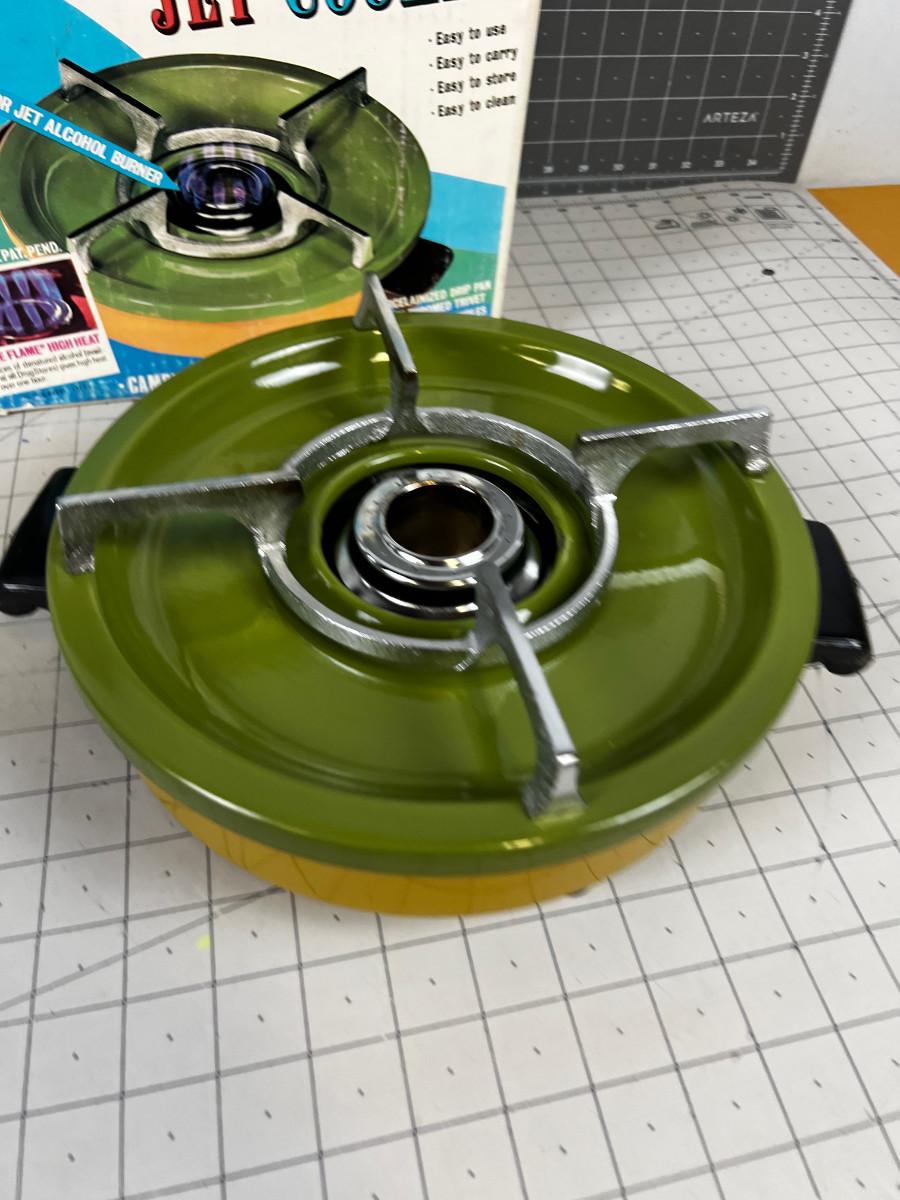 Never used in Original Box. EMERGENCY COOKER. Uses Alcohol to burn.