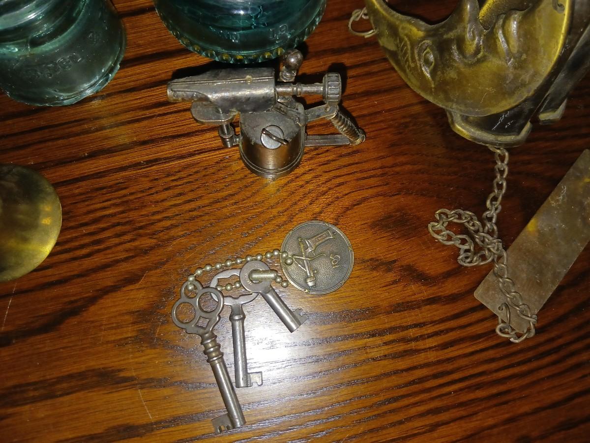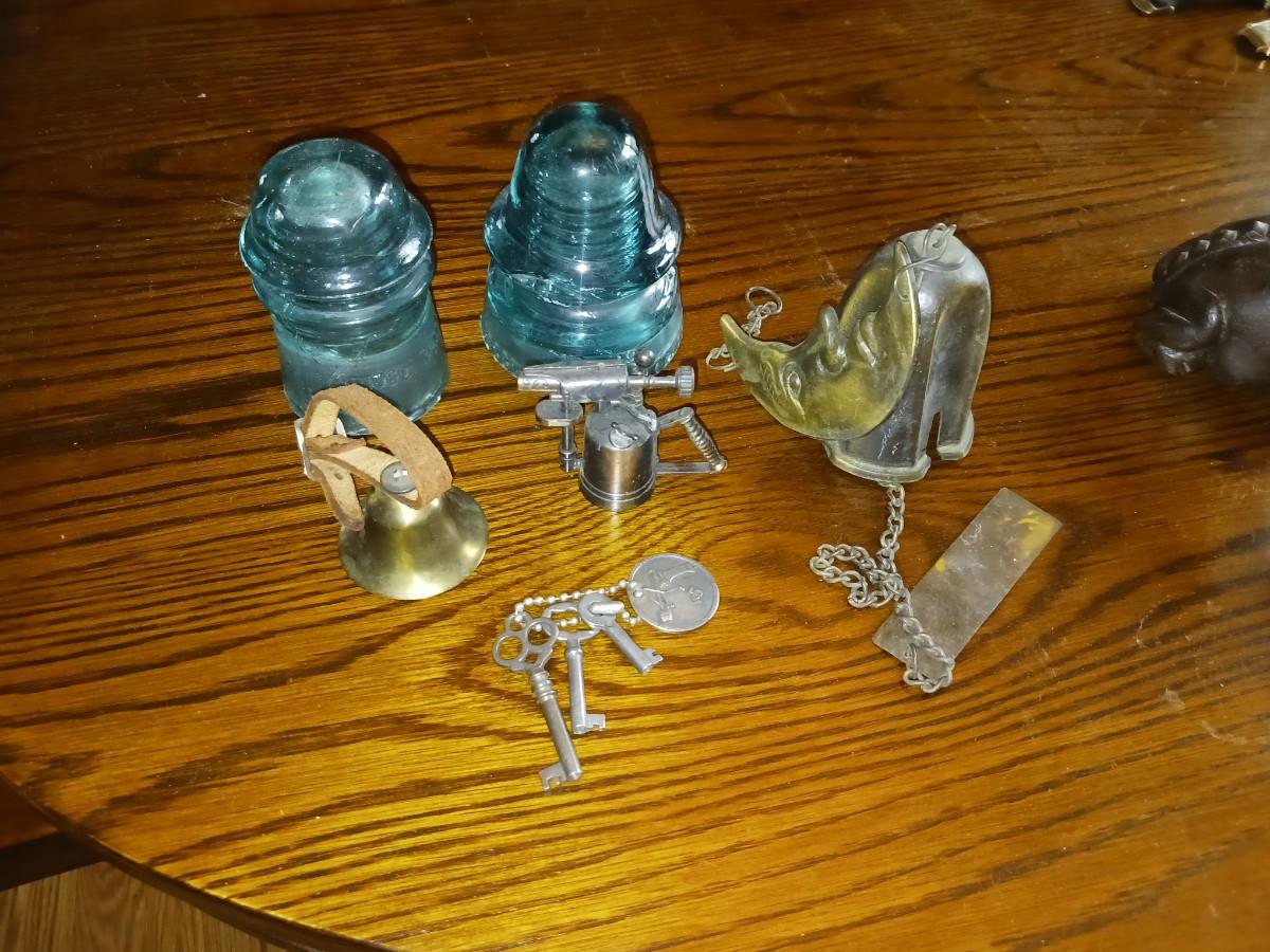 INSULATORS, TORCH PENCIL SHARPENER, WINDCHIME, BELL AND KEYS
