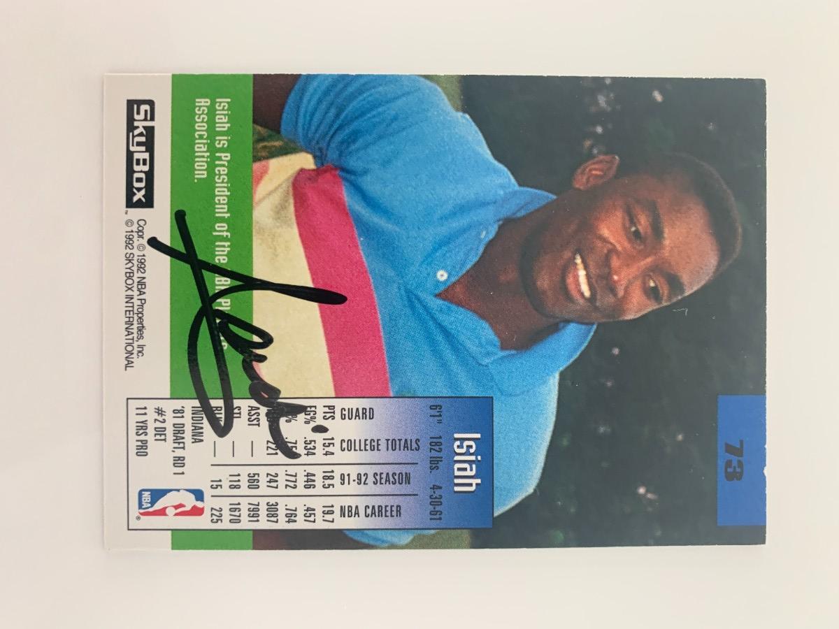 Isiah Thomas signed basketball card. Skybox 1992. 2x3 inches