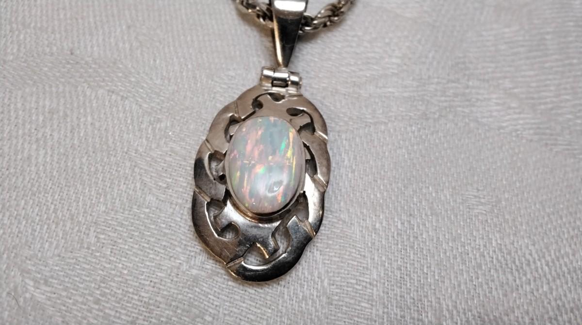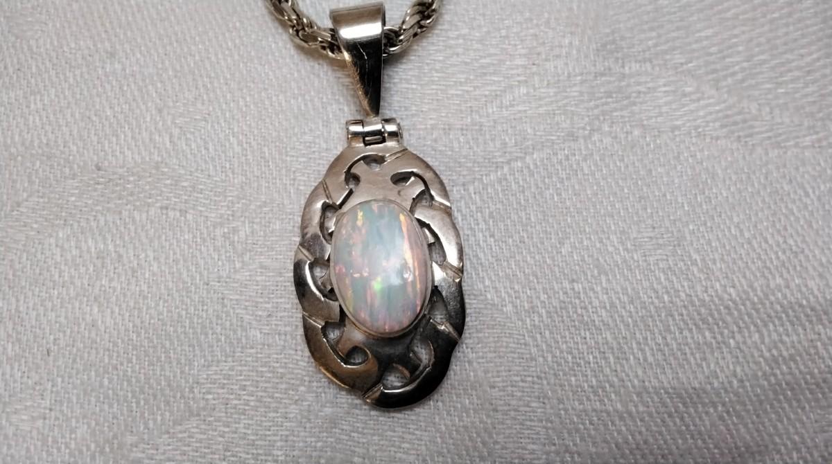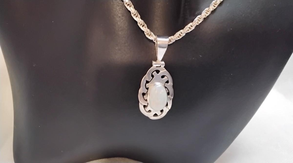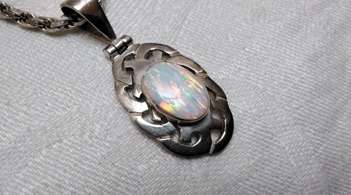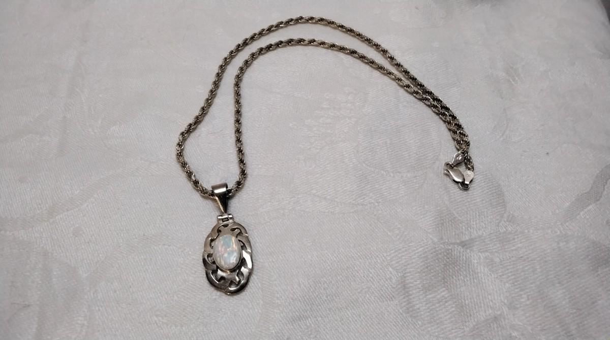 Vintage Mexico Opal 950 Silver On 19" 925 Italian Chain