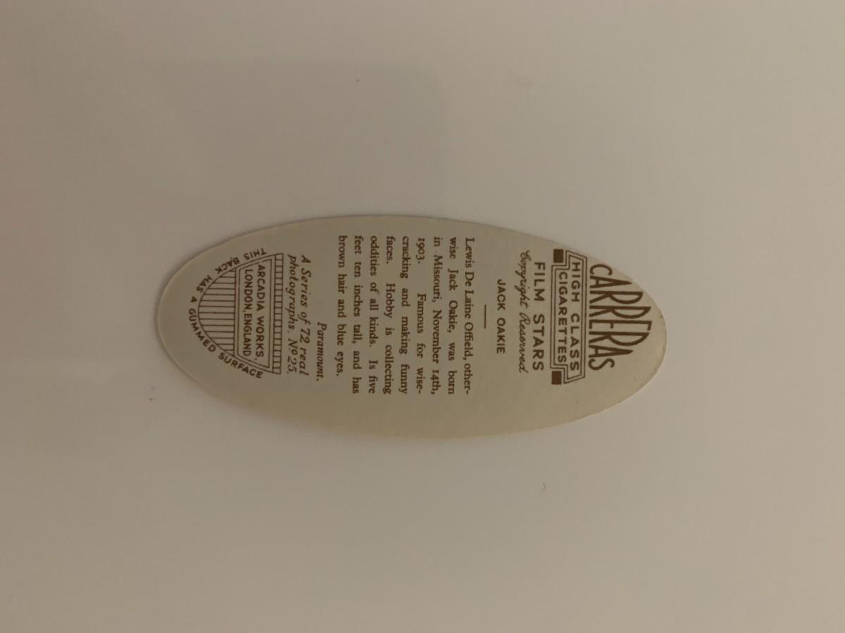 Jack Oakie unsigned cigarette card