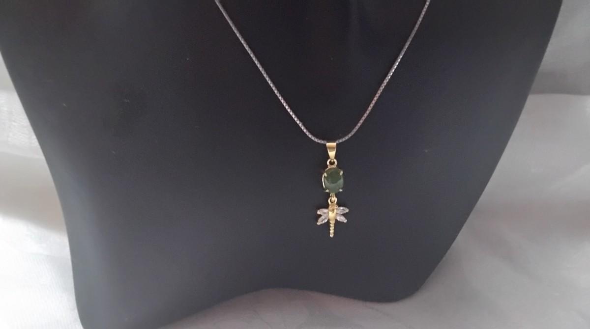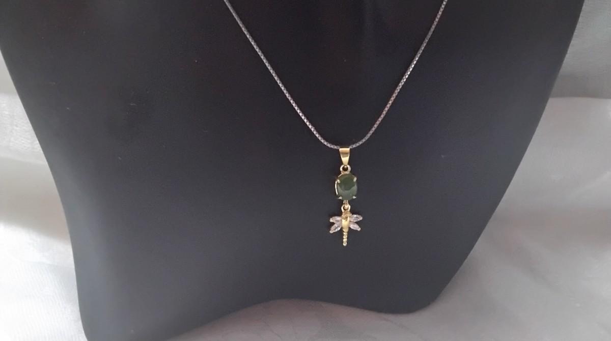 Gold Vermeil 20" Jade And White Sapphire Necklace