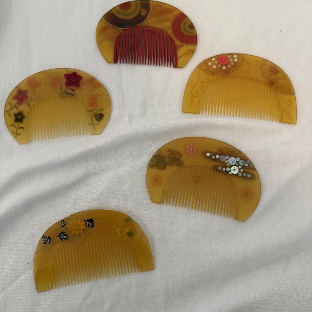Japanese Hair Combs with Hand-painted Silk Parasol and More (LR-BM)