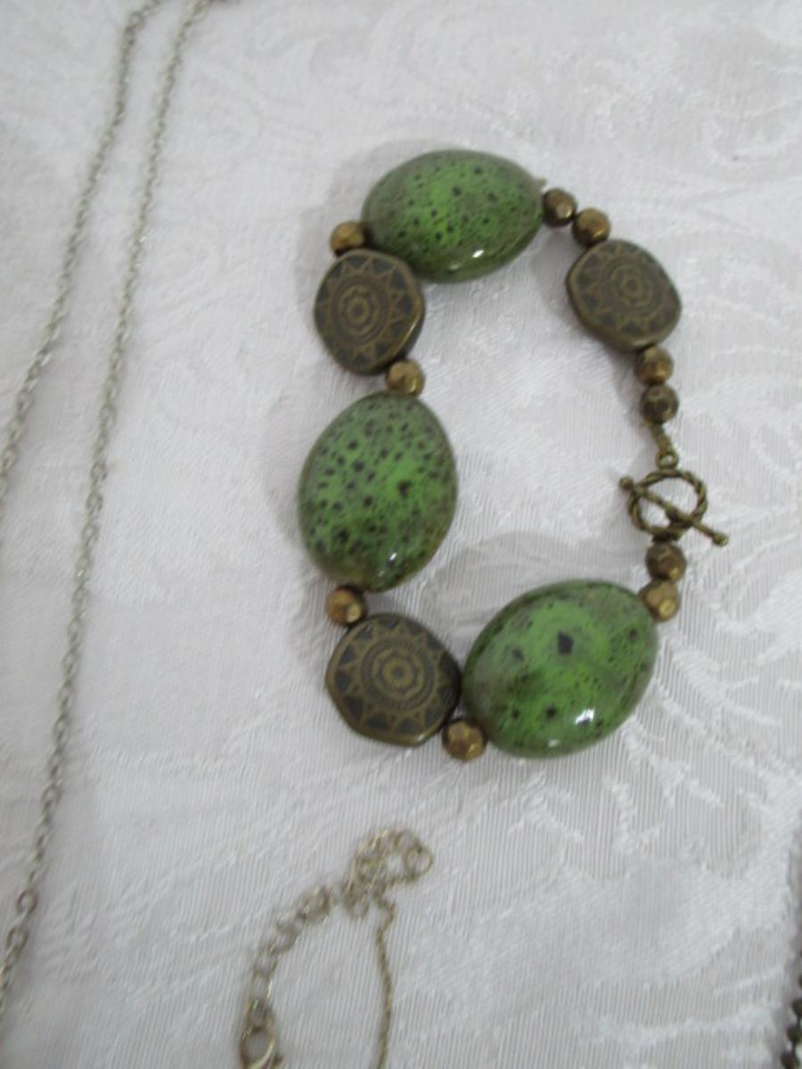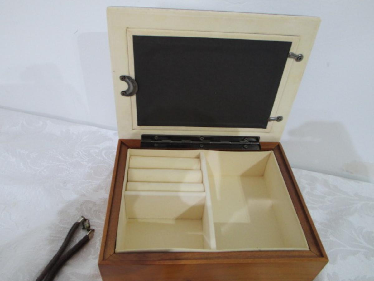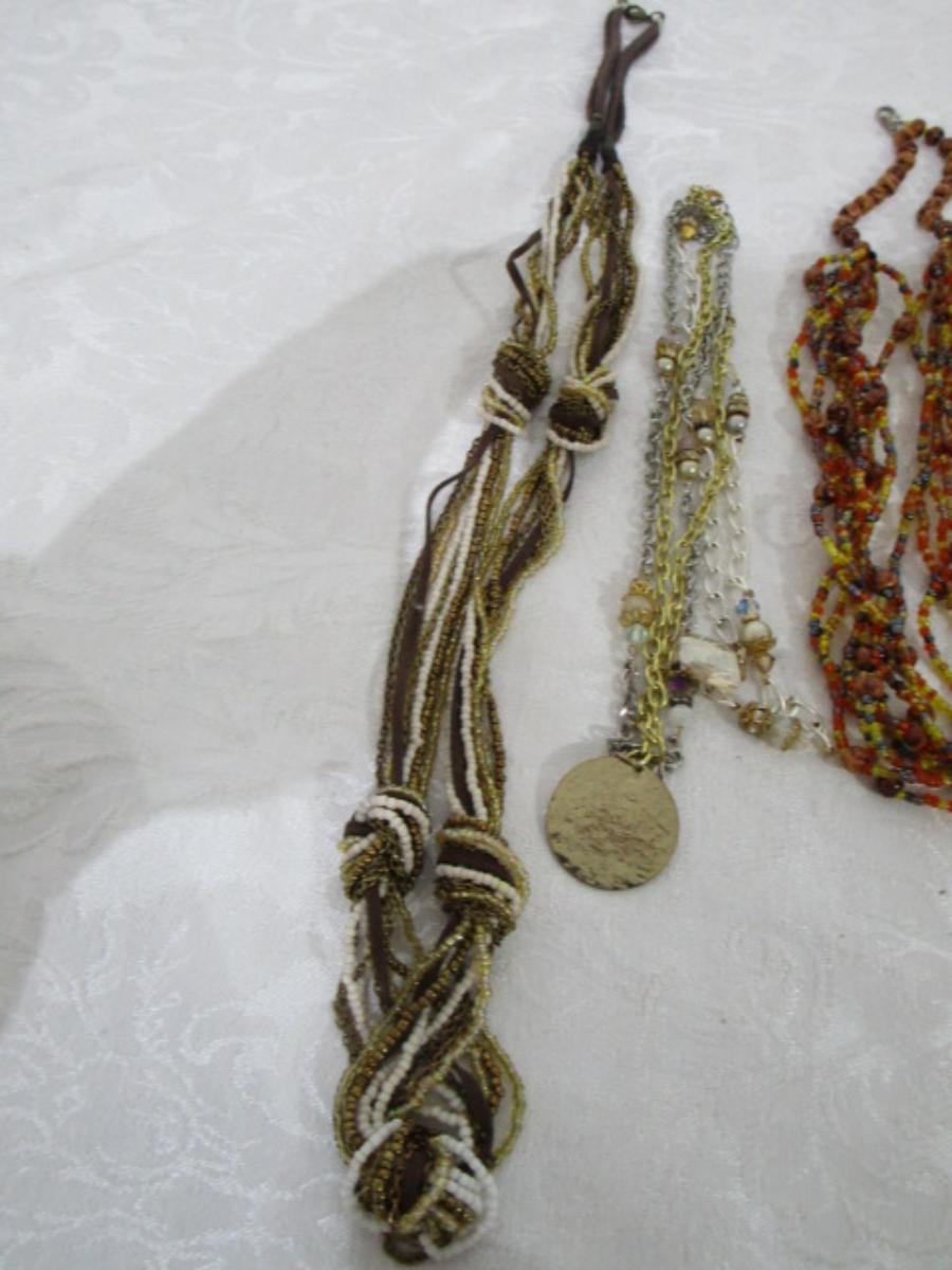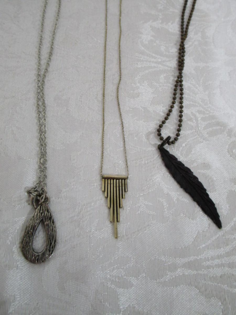Jewelry box, 8 necklaces, 1 bracelet, 1 pr earrings, 1 Finders Keypers