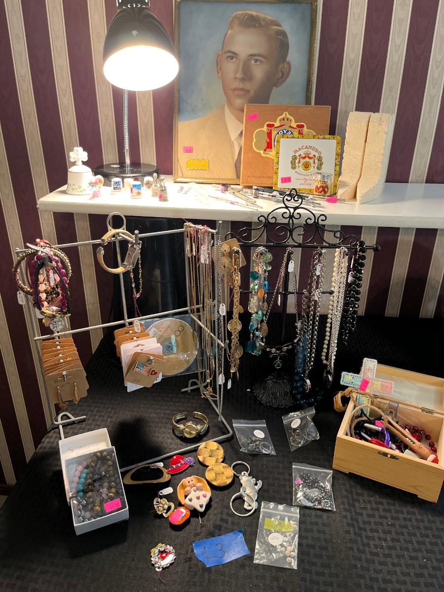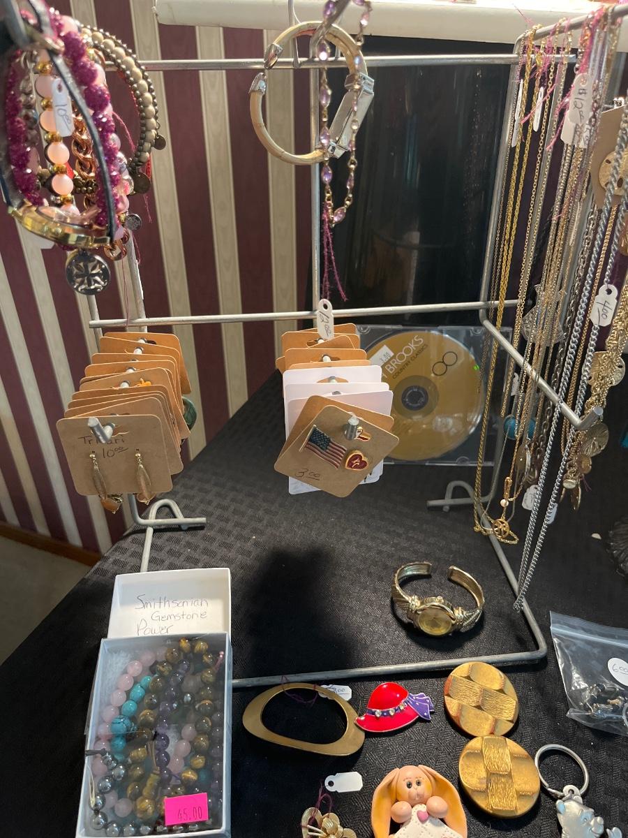 Earrings, Necklaces, thimbles, watches, bracelets & more.