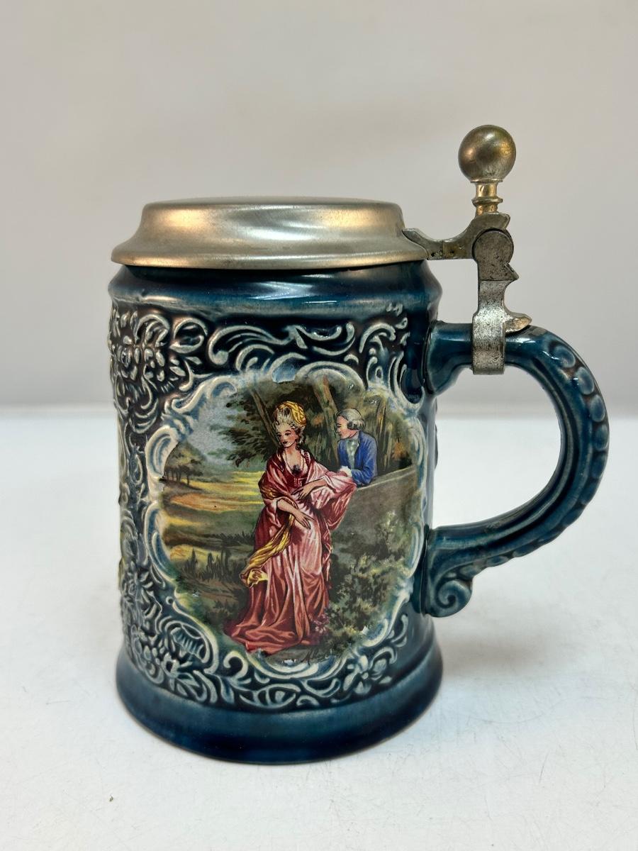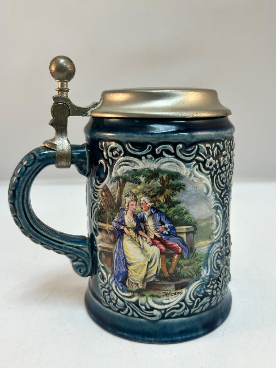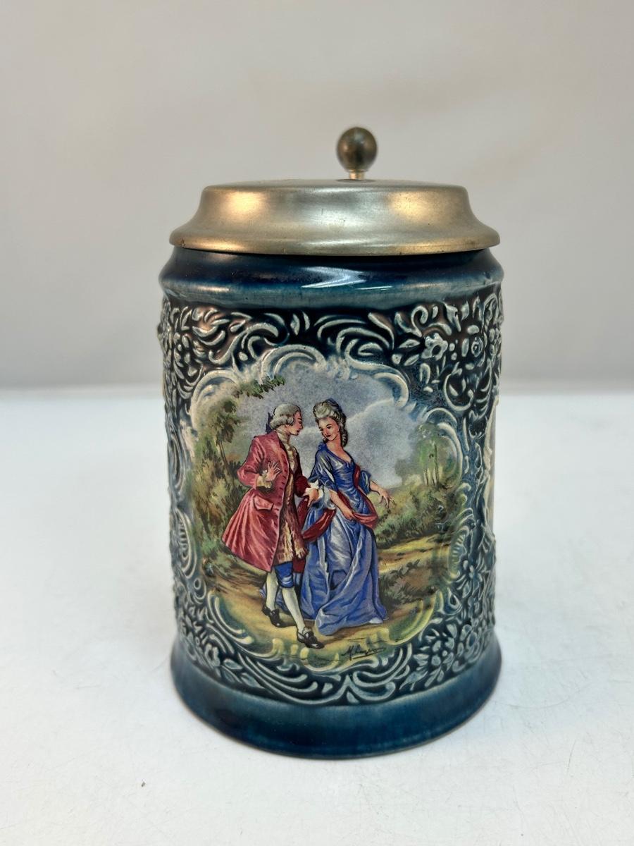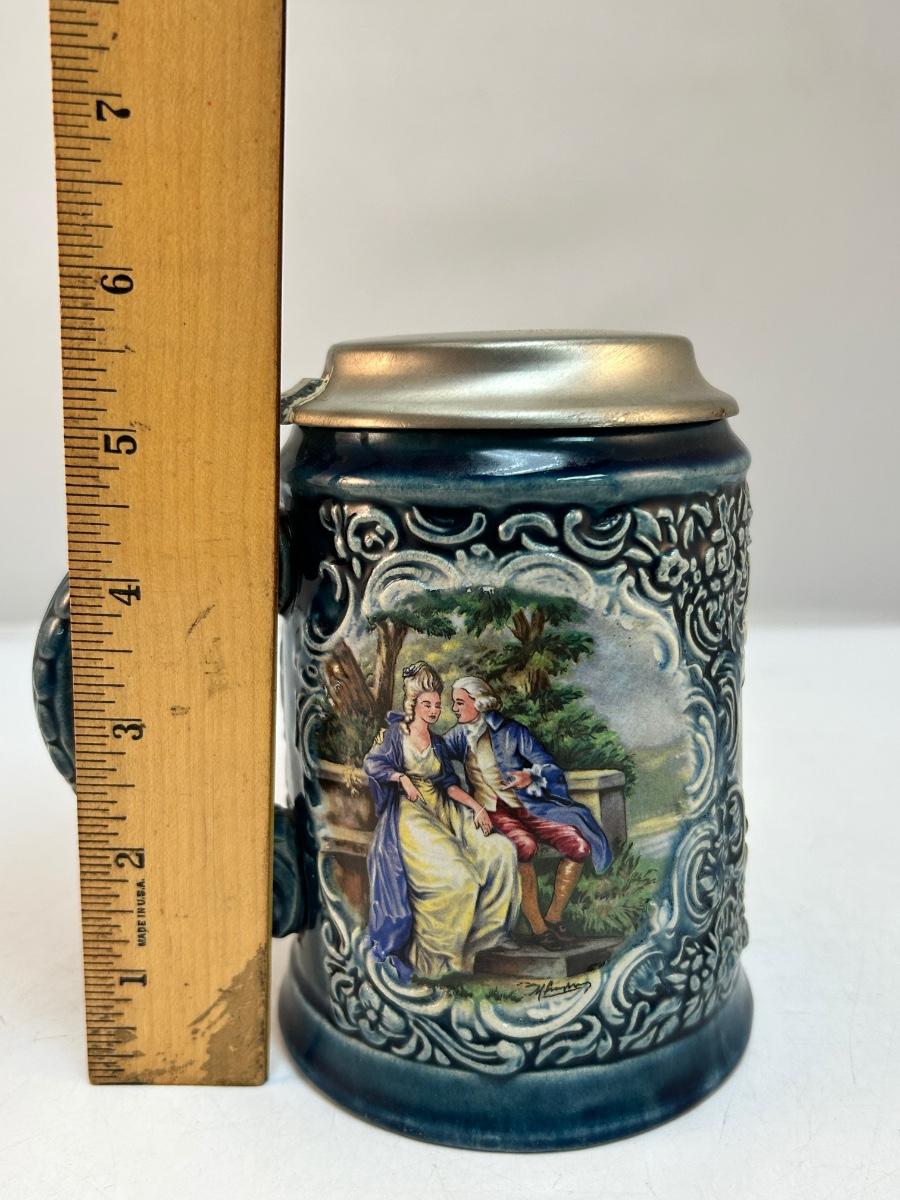 Vintage Victorian Lovers Couple Scenes Lidded Short Beer Stein Marzi & Remy