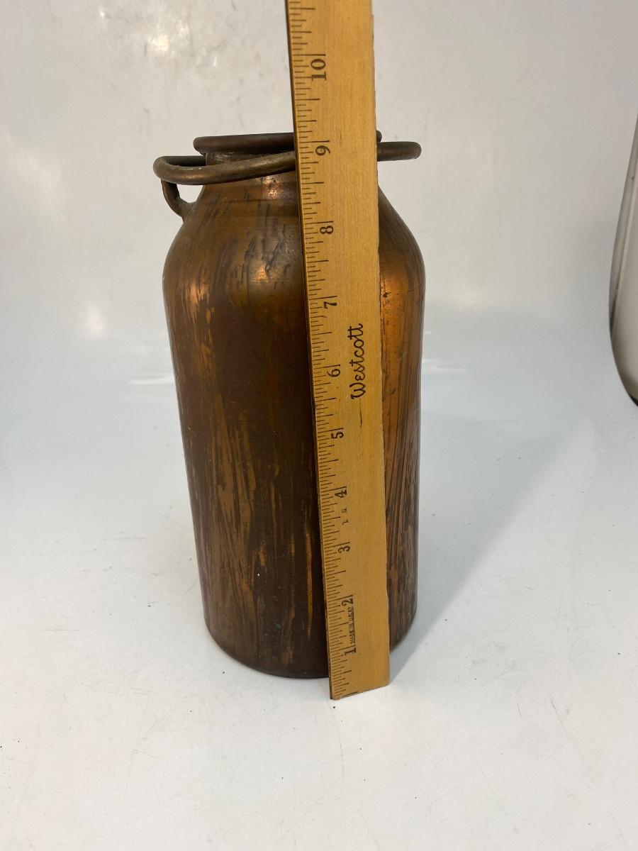 Vintage Rustic Small Copper Metal Milk Jug Bottle. Signs of age. Displays great. About 9" size.