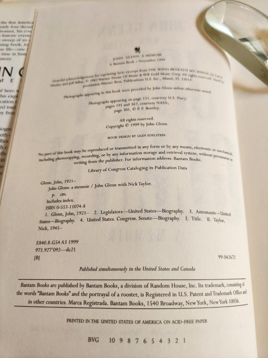 This auction lot is for a good copy of John Glenn, A Memoir. The book is authentically autographed by the author who was also the first human to walk on the surface of the moon. This is a 1st Edition Bantam Book., 1999. The book is as new with a very good dust cover with minor corner chipping. The book is hardbound with 422 pages.