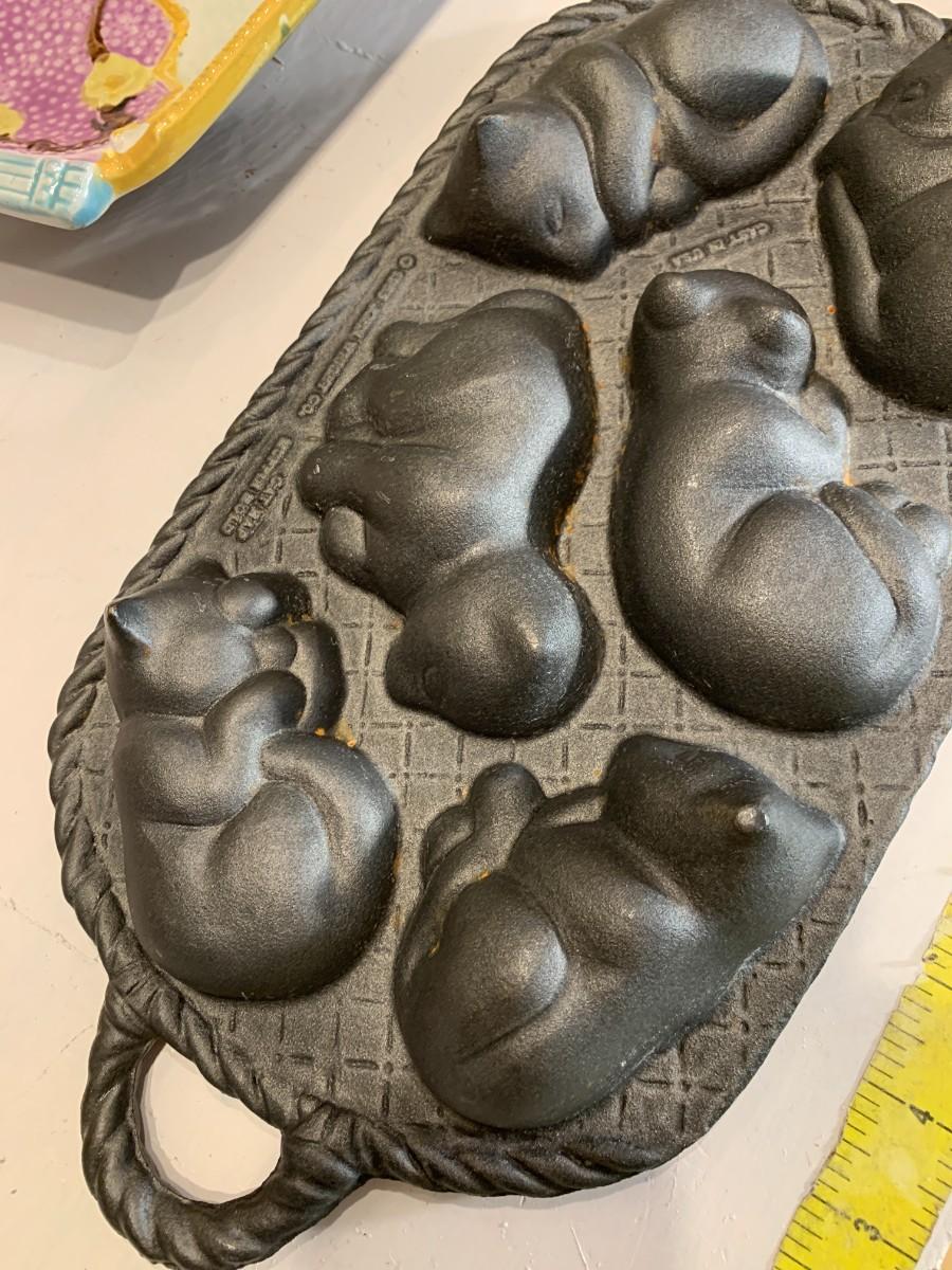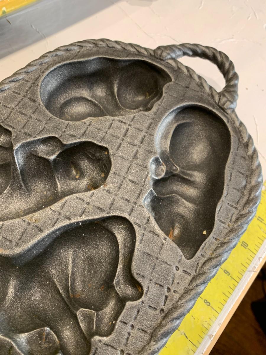 John Wright 1985 Cast Iron Cat Nap Muffin Pan