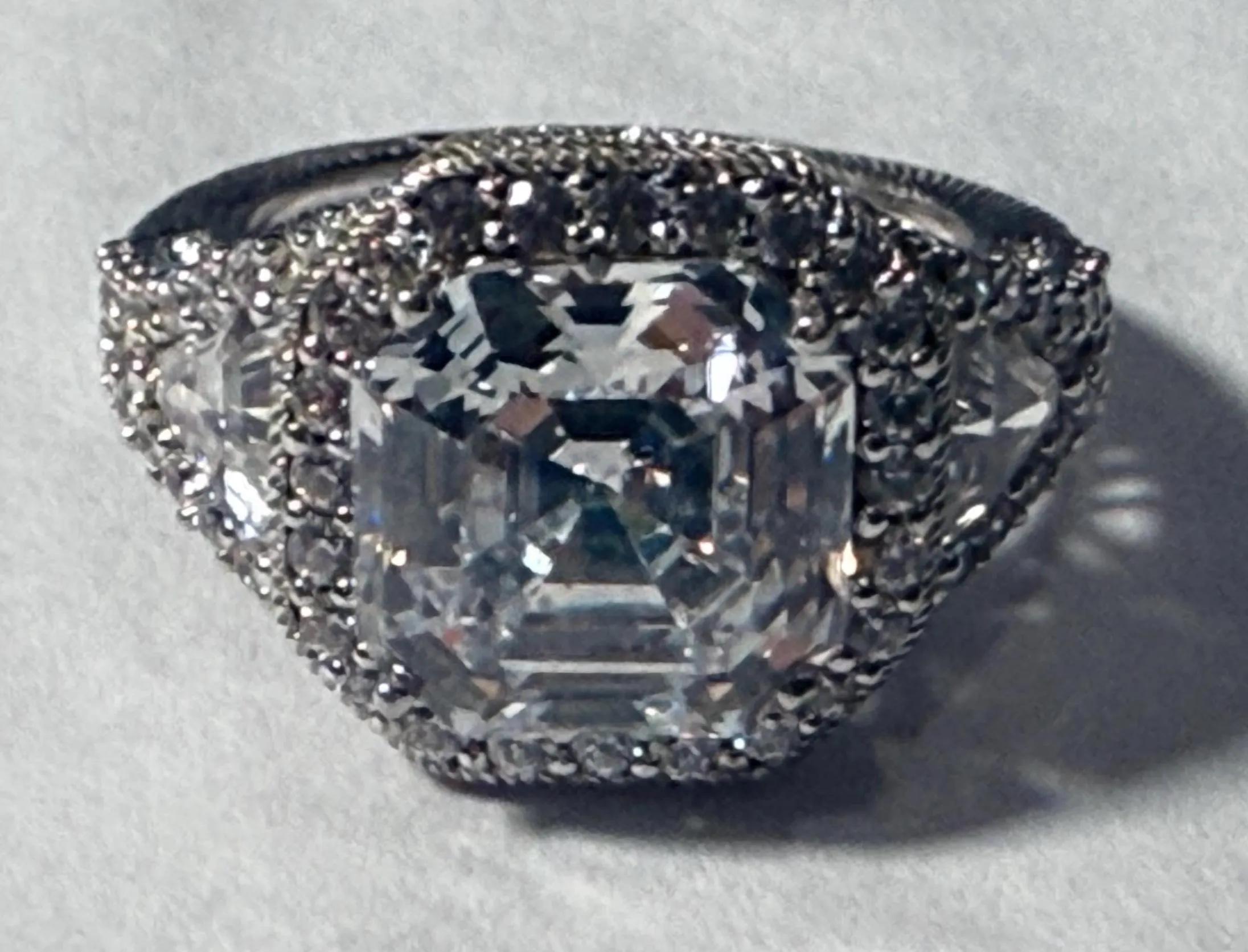 Judith Ripka Designer Sterling Silver CZ Engagement Style Ring Size-6 in VG Preowned Condition as Pictured. $5 DOMESTIC SHIPPING.