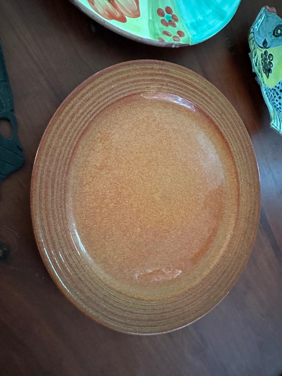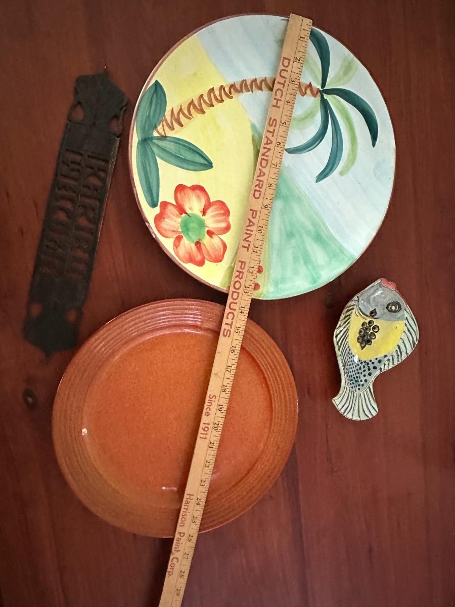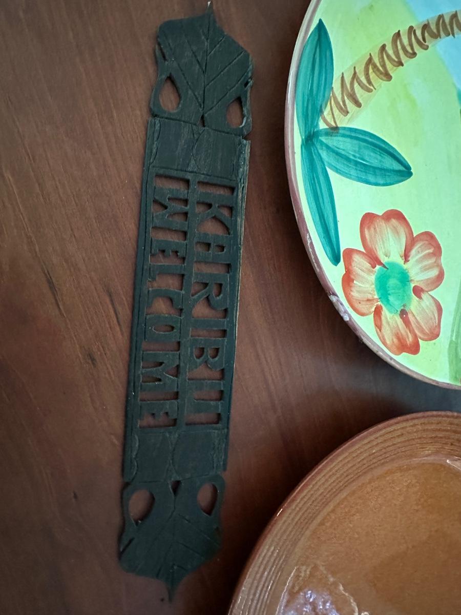 BAUER POTTERY CHOP PLATE, UNSIGNED PALM TREE PLATTER, FISH POTTERY DISH, KARIBU WELCOME SIGN